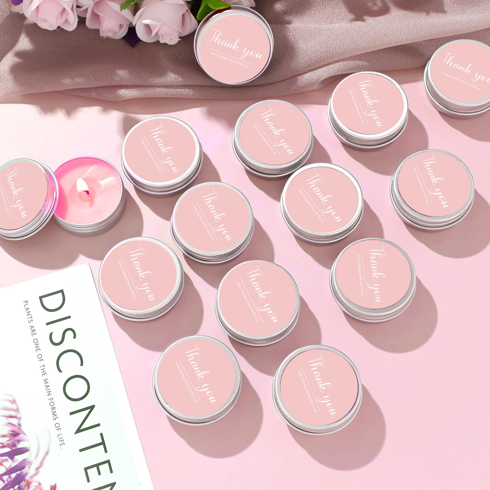MTLEE 50 Pcs Thank You Candles Gift Wedding Favors Baby Shower for Guests 1 oz Lavender Scented Soy Wax Candle Aromatherapy Candle Favors for Bridal Baby Shower(Pink,Thank You)