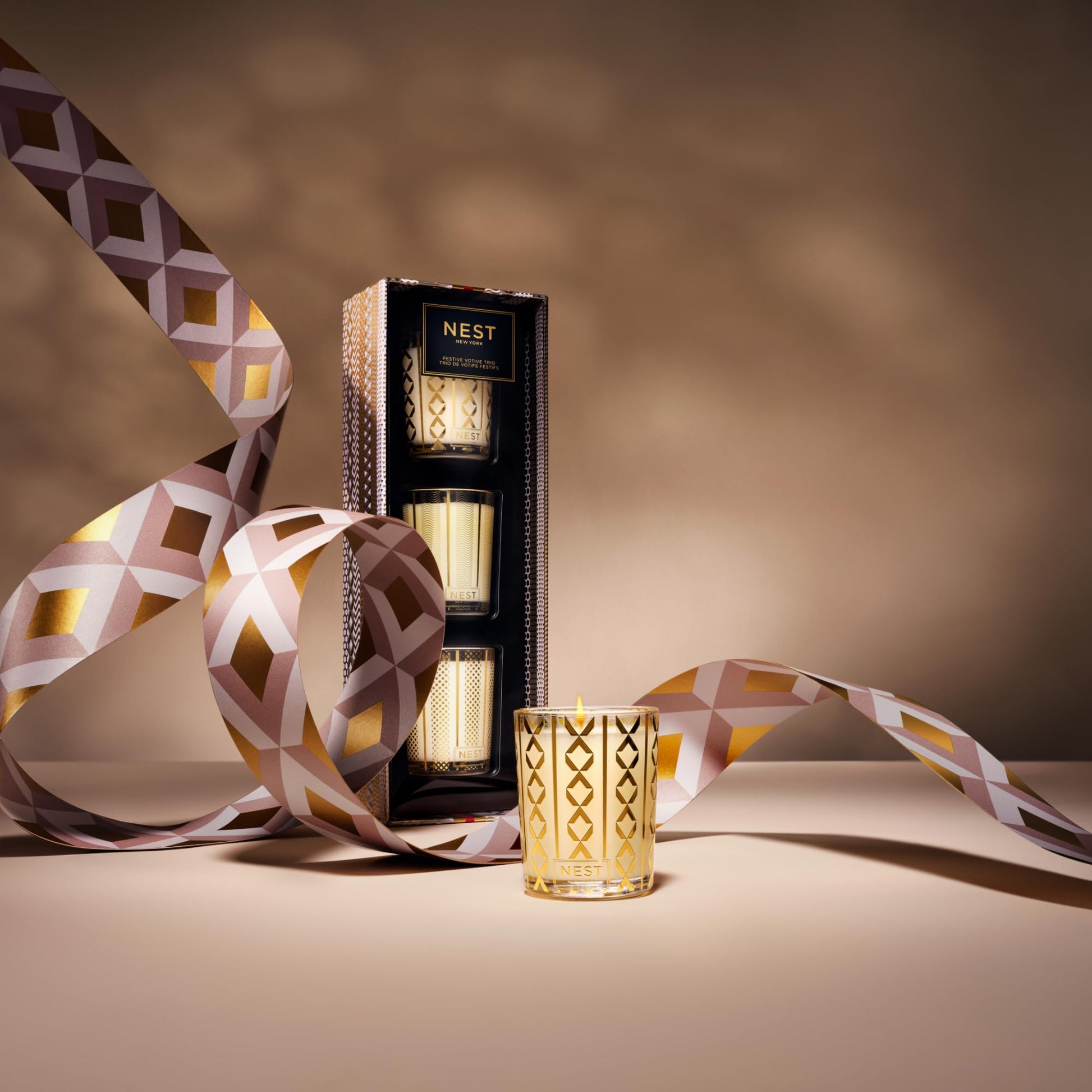 - BELOVED SCENTS - The trio of votive candles includes three of NEST New York’s beloved seasonal scents: Holiday, Birchwood Pine, and Crystallized Ginger & Vanilla Bean.