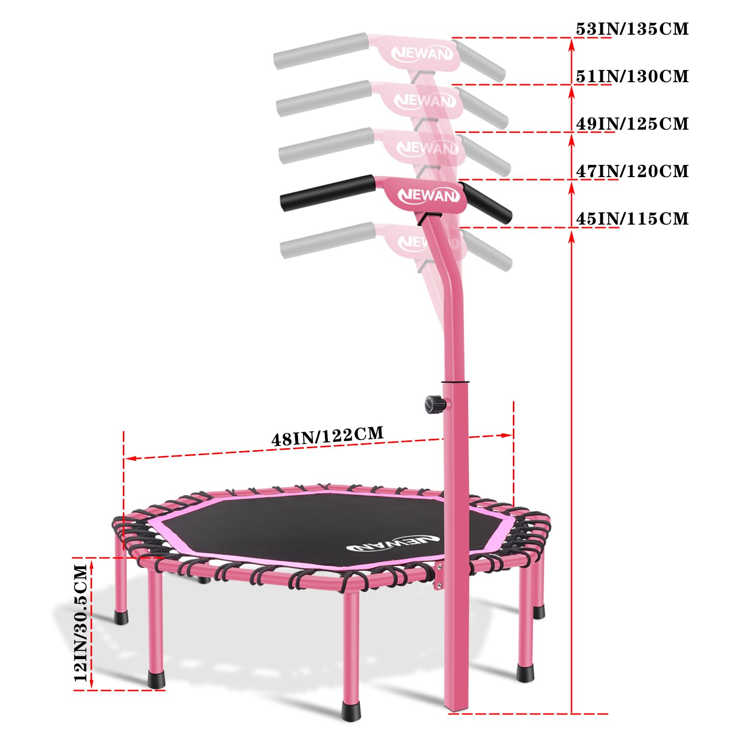 Newan 48" Fitness Trampoline with Adjustable Handle Bar, Silent Trampoline Bungee Rebounder Jumping Cardio Trainer Workout for Adults - Max Limit 330 lbs
