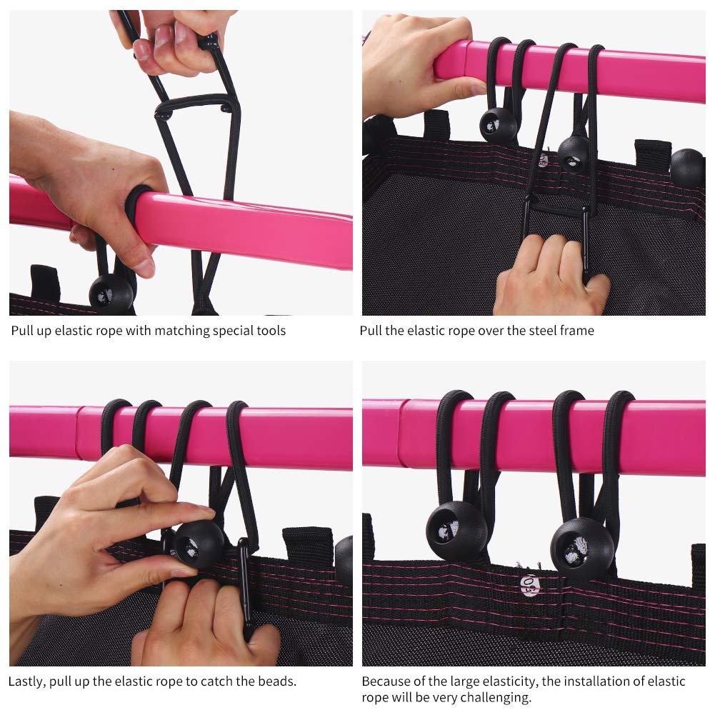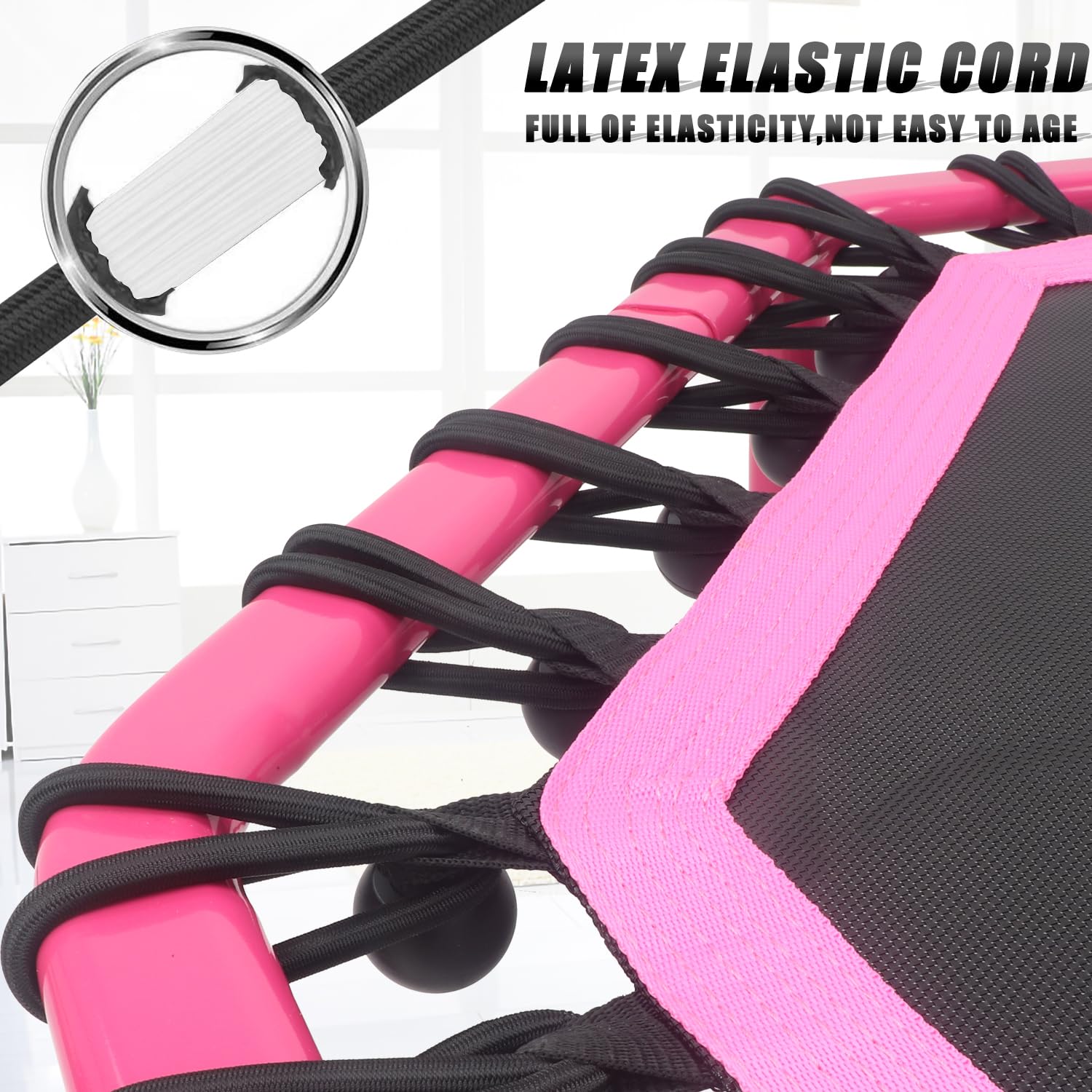 - ✅【Safer, Quieter, Soft but Strong Bounce Back】:The bungee-rope design system with 40 thickened ropes which are 0.32'(8MM) of diameter provides joint-friendly suspension, reduces noise in maximum extent, affords more stability, and gives you a great jumping experience.
