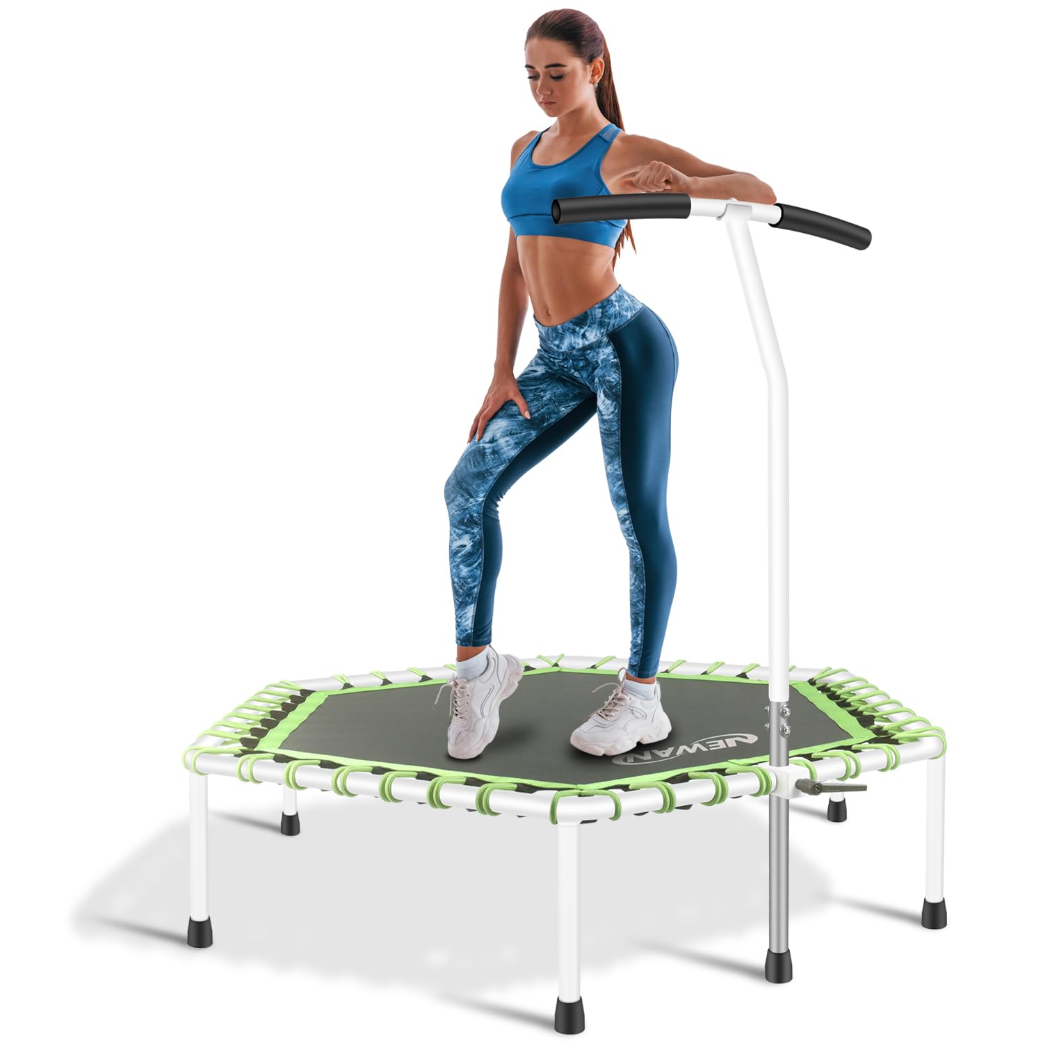 Newan 48'' Fitness Trampoline with Adjustable Handle Bar, Silent Trampoline Bungee Rebounder Jumping Cardio Trainer Workout for Adults - Max Limit 330 lbs