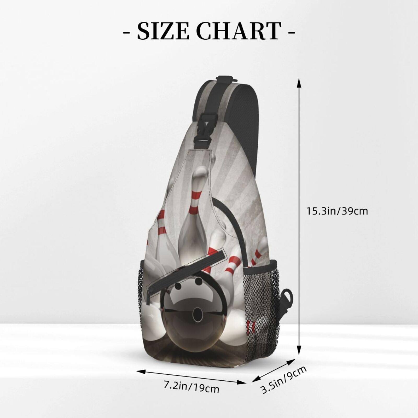 NISENASU Ball Print Sling Bag Crossbody Backpack,Sports Theme Bowling Ball Knocked Down Bowling Pins Ball Team Popular Art Chest Bag Adjustable Casual Shoulder Bag Travel Hiking Daypack