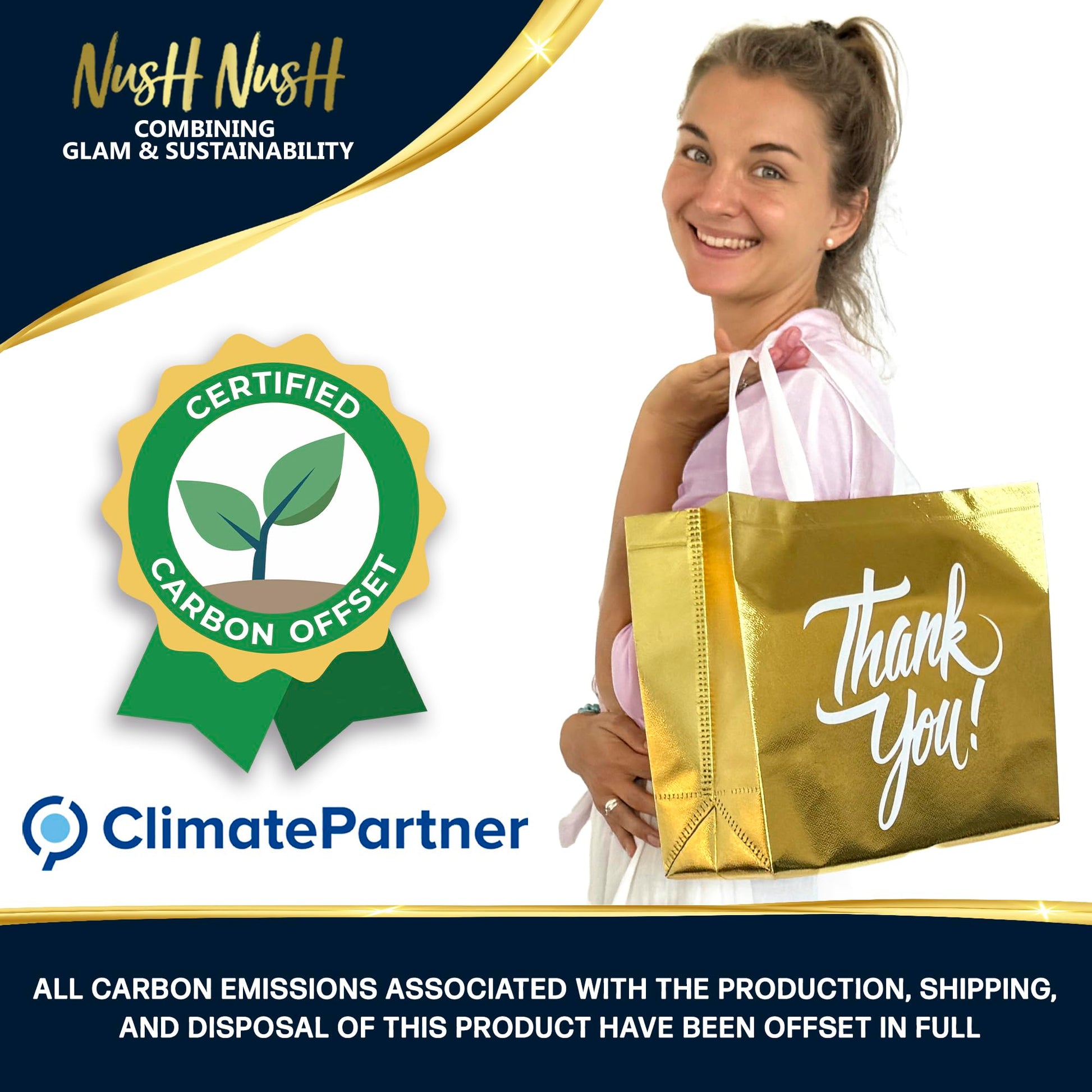 - GIFT WITHIN A GIFT – Give your gifts in style with Nush Nush Elegant and Eco-Friendly gold thank you gift bags! Such a stunning reusable gift bag will be a wonderful addition to any present as it is likely to serve as an extra gift that will be cherished and reused by the receiver again and again.