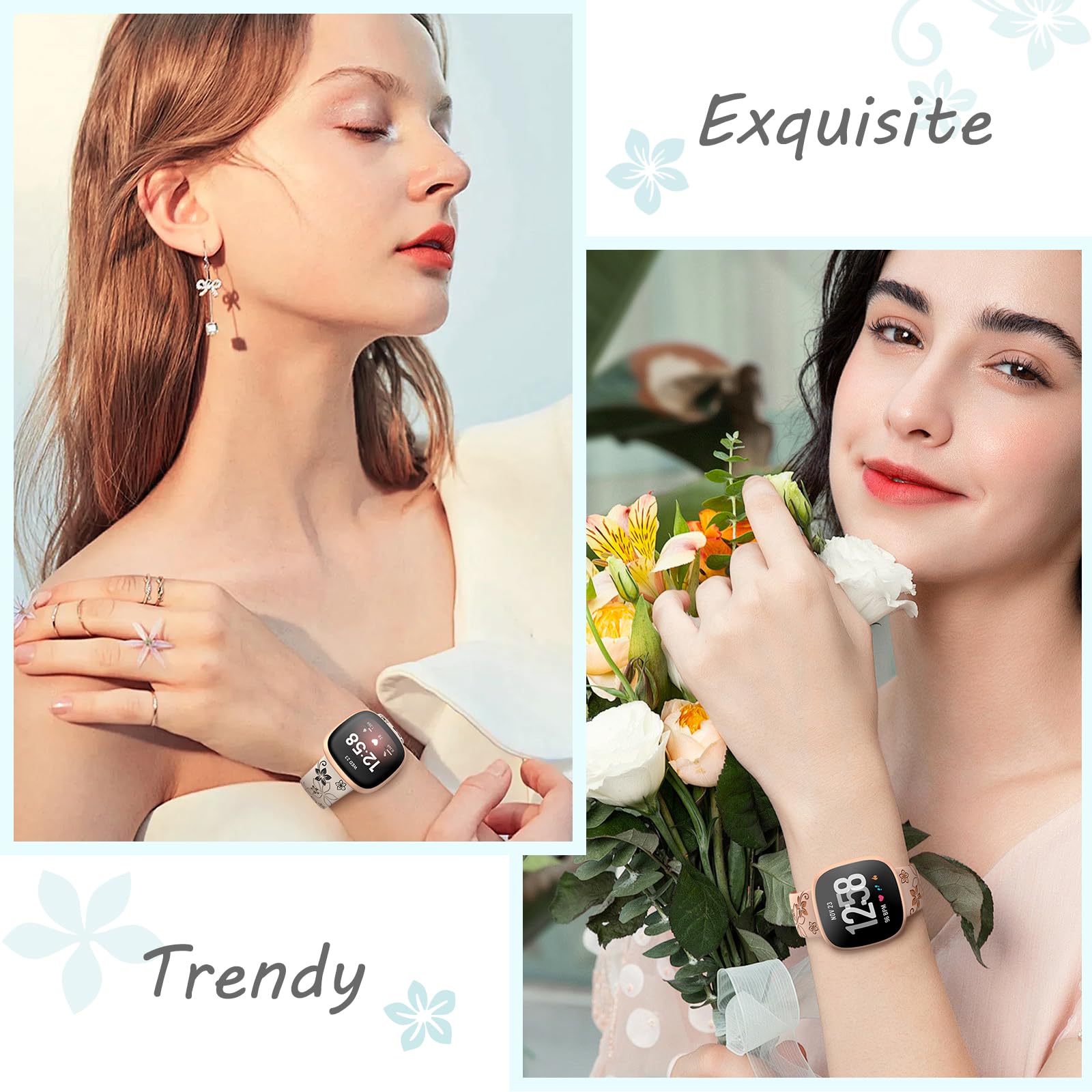 - 【Only Design For Fitbit Sense/Sense 2/Versa 4/Versa 3】OHOTLOVE floral engraved for women soft silicone replacement wristbands Only Compatible with Fitbit versa 4/ Fitbit Sense 2 and Fitbit versa 3 / Fitbit Sense.