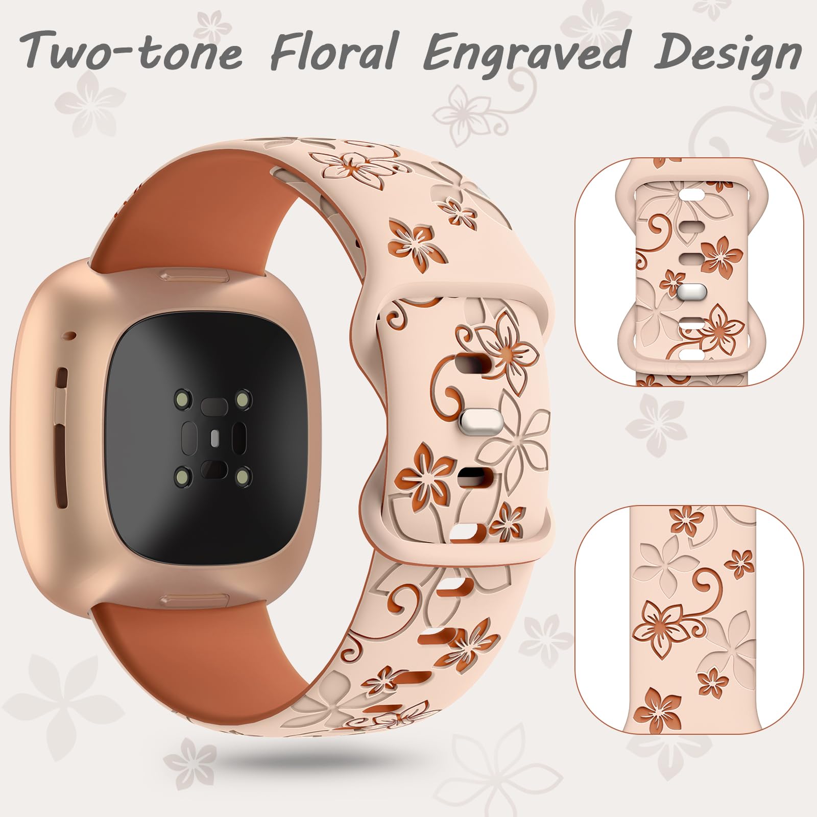 - 【Comfortable to Wear in Daily Life】OHOTLOVE engraved flower fitbit versa 4 band made of high-grade silicone, offers a luxurious feel and exceptional durability. The soft and lightweight nature of the band makes it perfect for everyday use, as it ensures that your skin remains comfy and free from irritation even when you wear the watch for extended periods of time.It is the best choice for your work and life.