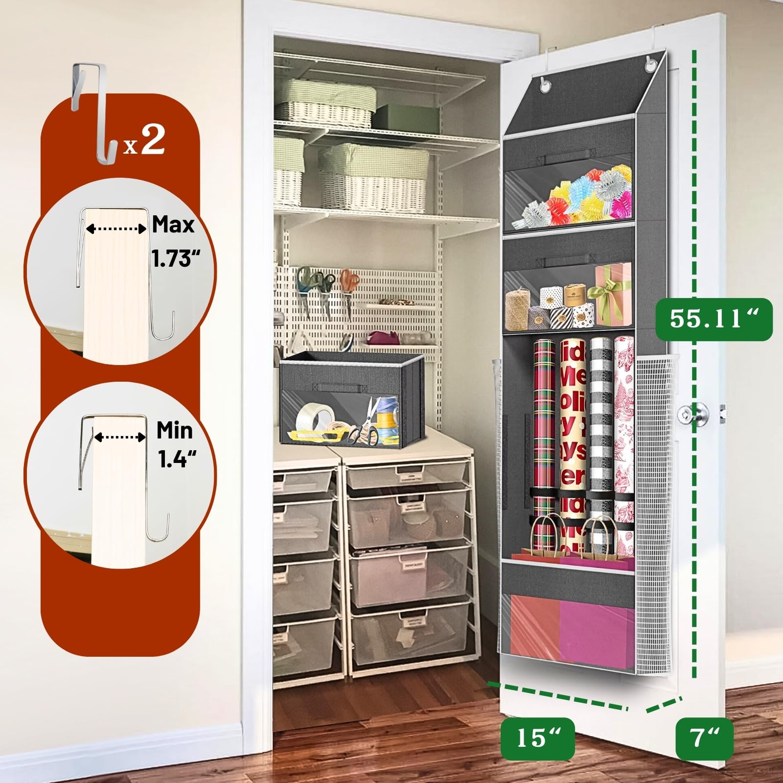 - 【Space-Saving Gift Wrap Storage Solution】Tired of cluttered floors? Our gift wrapping organizer storage is designed to hang over the door, maximizing vertical space and keeping your wrapping paper, gift bags, and accessories neatly organized. This over the door organizer helps you store all your Christmas wrapping essentials without taking up valuable floor space.