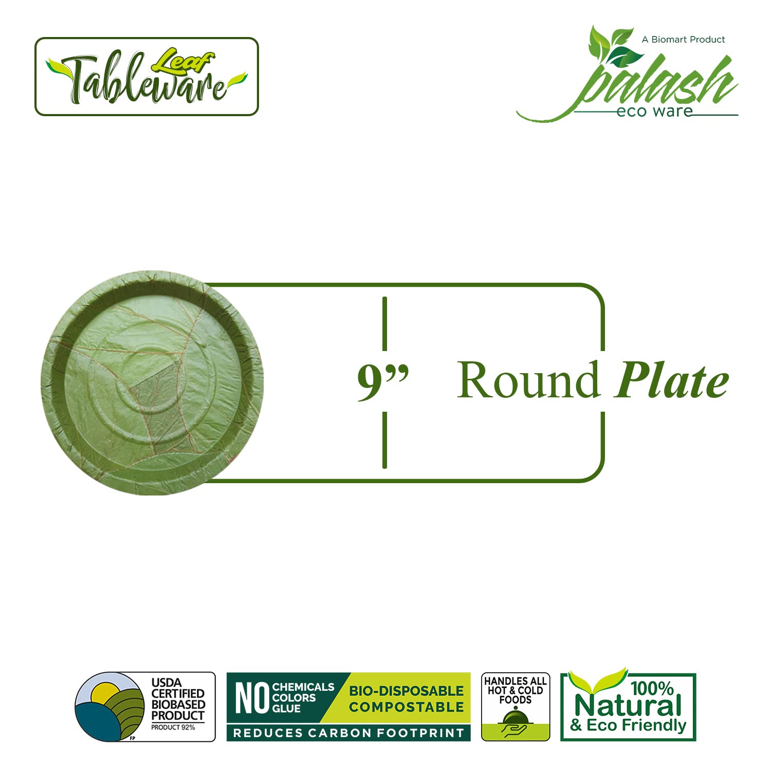 Palash-Sal leaf Single use Plate | Natural, biodegradable, backyard compostable, USDA Certified | Parties, Festival, wedding, BBQ Disposable supply | 9" Round Plate | Pack of 50