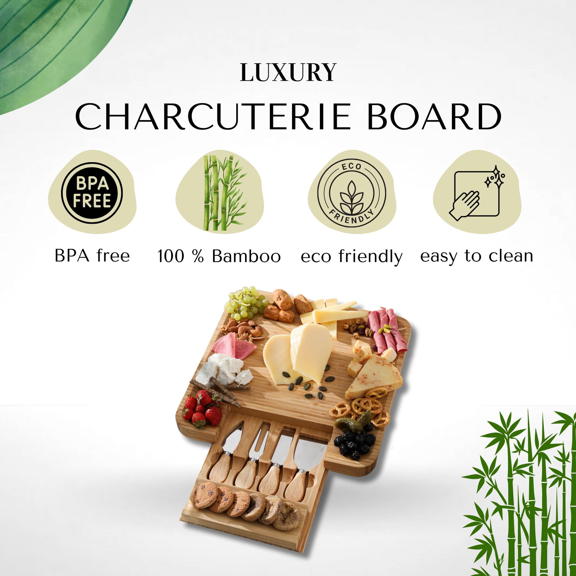 - Premium Bamboo Material: Crafted from high-quality, sustainably sourced bamboo, this 13x13x2 inch large personalized charcuterie board is not only durable and long-lasting but also naturally resistant to moisture and odors. The high quality Moso bamboo material makes it a stylish and environmentally conscious choice, ensuring that you can enjoy both elegance and sustainability. Each board can be personalized with names, dates, or unique messages