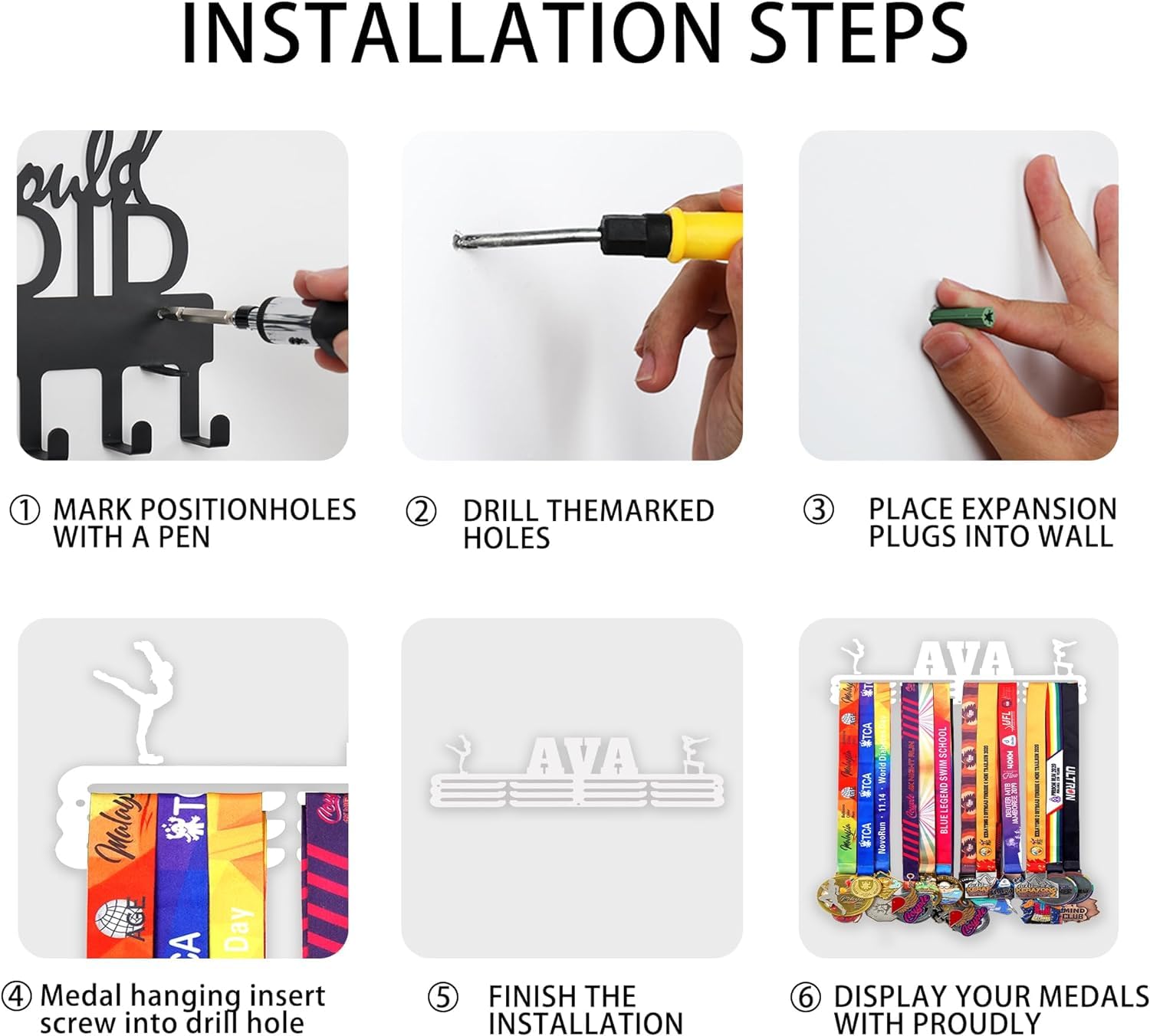 - - **Easy Installation**: Securely screws onto the wall, made with strong steel construction for secure medal placement.