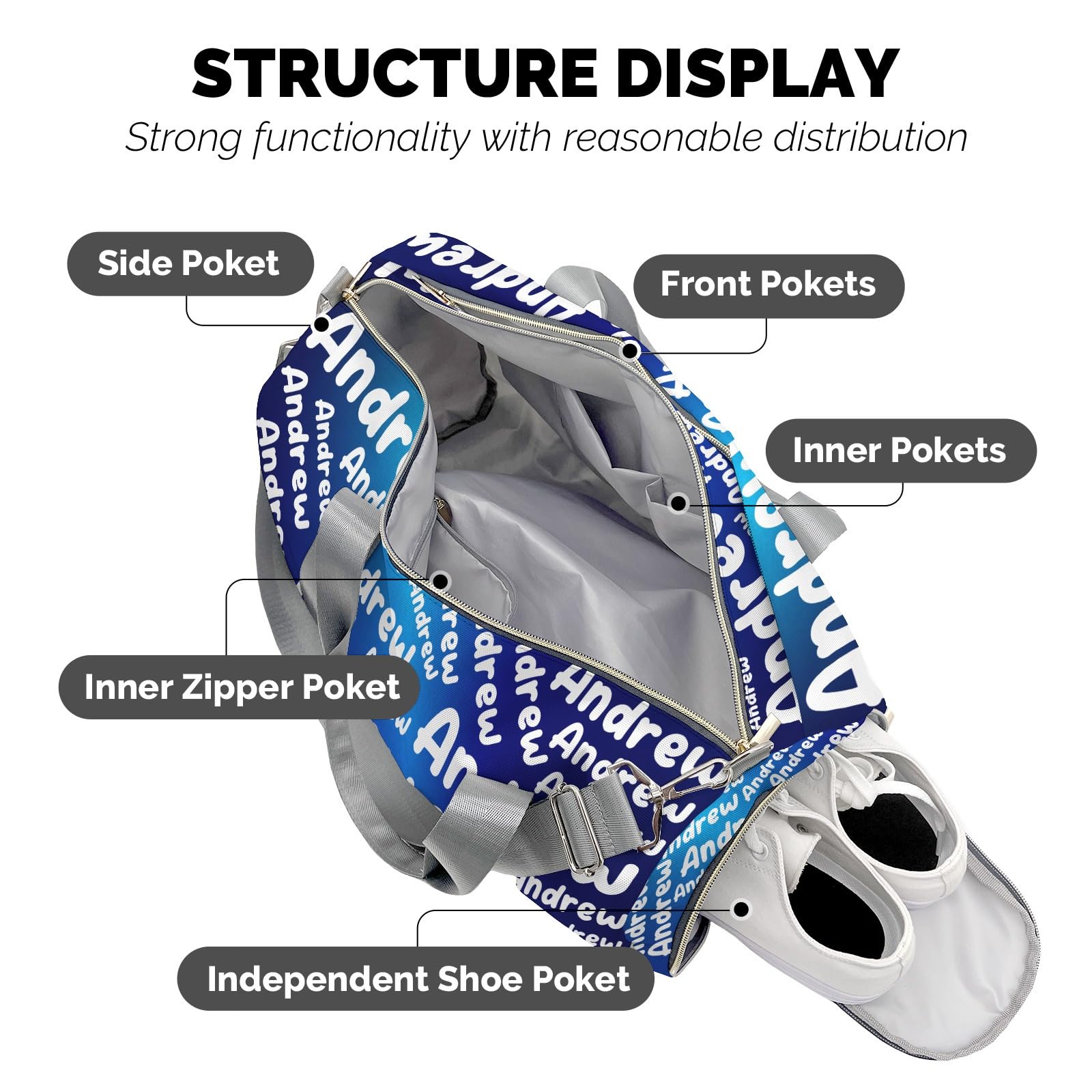 - CUSTOMIZE YOUR DUFFEL BAG: This is a customized personalized travel bag with a name, click the 'Customize Now' button to quickly start customizing. All you need to do is upload your name or favorite text and you will get a unique travel bag
