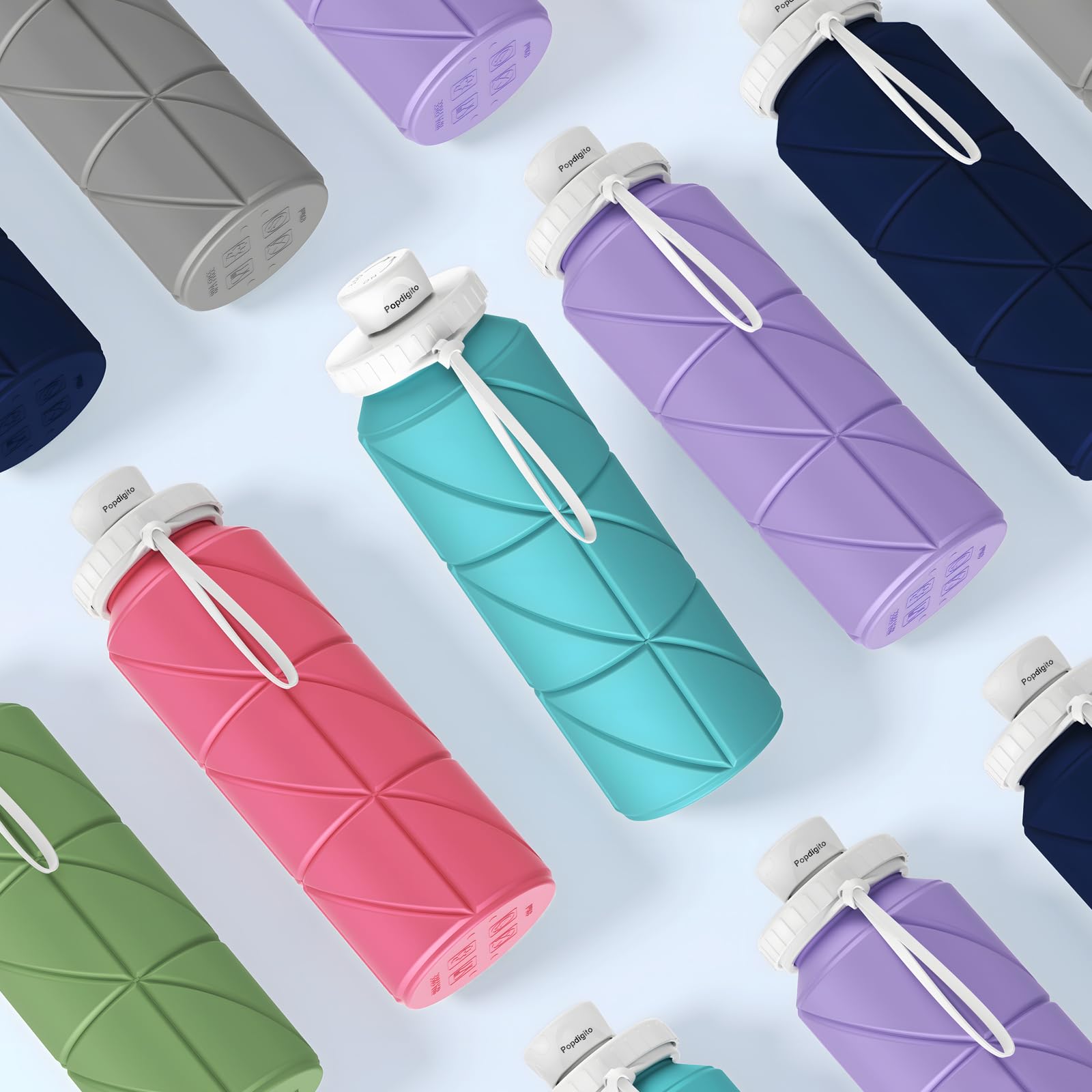 Popdigito Collapsible Water Bottle Foldable Silicone Travel Water Bottle Leakproof Flexible BPA Free Portable,Folding Water Bottle Lightweight for Camping, Hiking,Sports Water Bottles Travel 23oz
