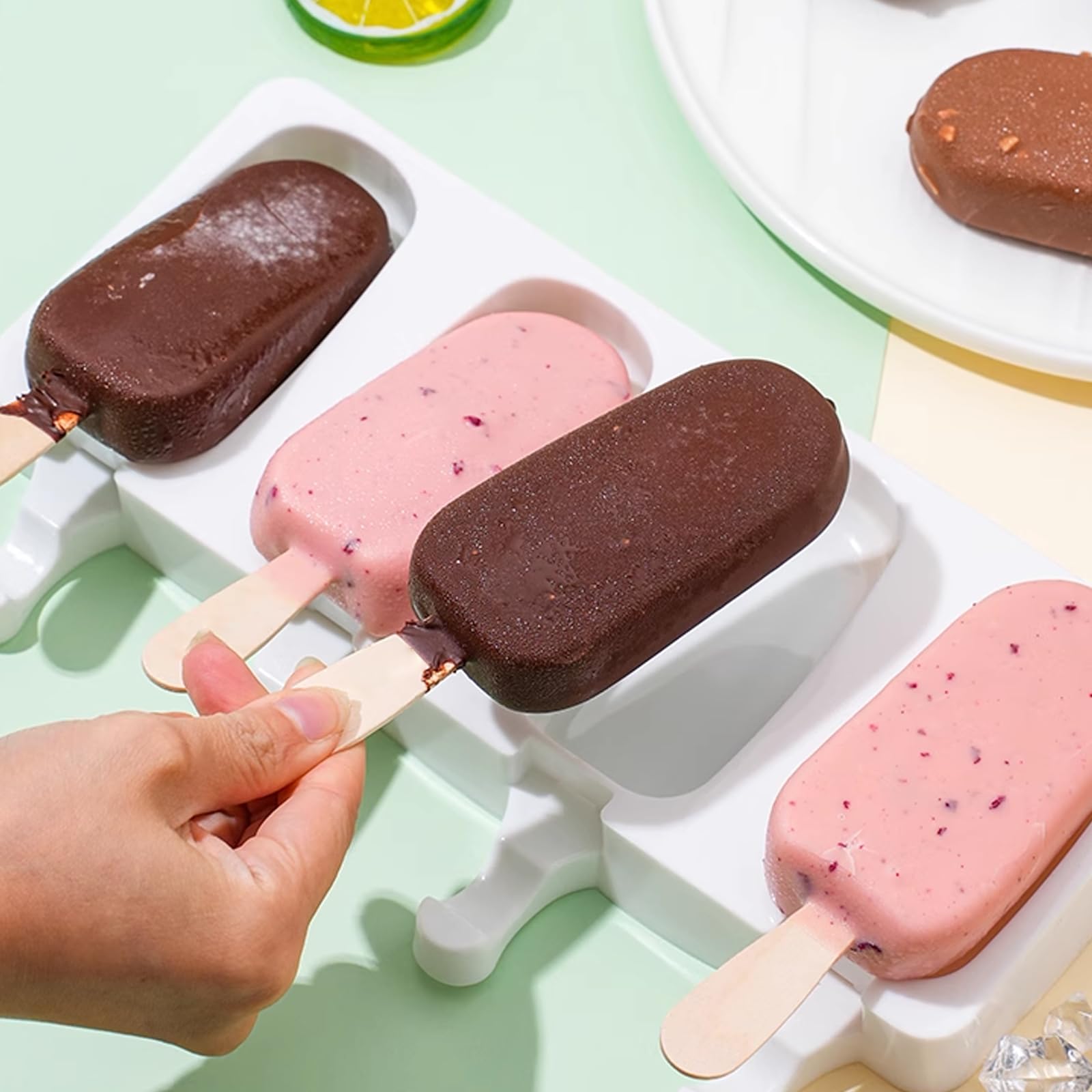 - Food-Grade Silicone: These popsicle molds are made of premium silicone, soft and great for baking. This material is very safe and soft, make your ice-lolly or cakesicles easy to release.