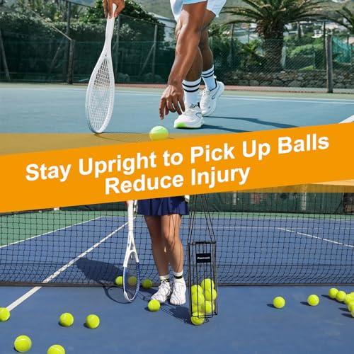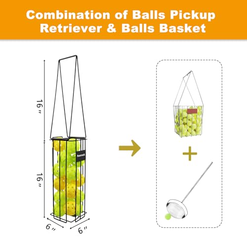 - Humanized Design to Reduce Injury: Adopts unique spring design that allows the balls to enter and prevent them from falling. You can retrieve the ball quickly in an upright position that saves your energy and reduces the risk of injury. This pickleball holder basket is a humanized training tool to protect your back, hips and knees during exercise.