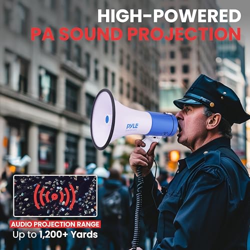 Details: PYLE Portable Megaphone Speaker PA Bullhorn - Built-in Siren, 50W Adjustable Volume Control in 1200 Yard Range, Ideal for Any Outdoor Sports, Cheerleading Fans & Coaches, or for Safety Drills