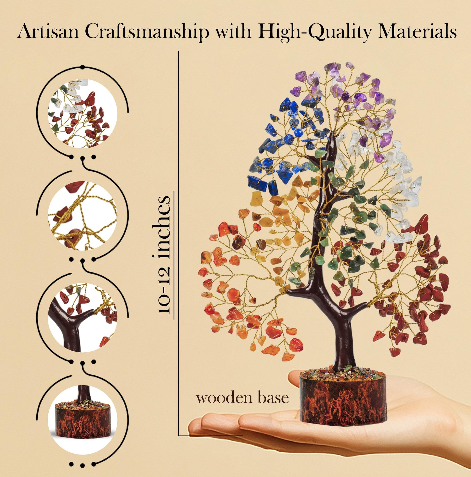- 7 Chakra Tree Of Life - Enhance your positive energy with our 10-12 inches seven chakra tree, featuring gemstones chakra crystal to promote healing and balance. Gem tree stones of the crystal tree of life are coupled with a golden wire including a natural wooden base. Premium meditation accessories, this office decor enhances the spiritual energy around you.