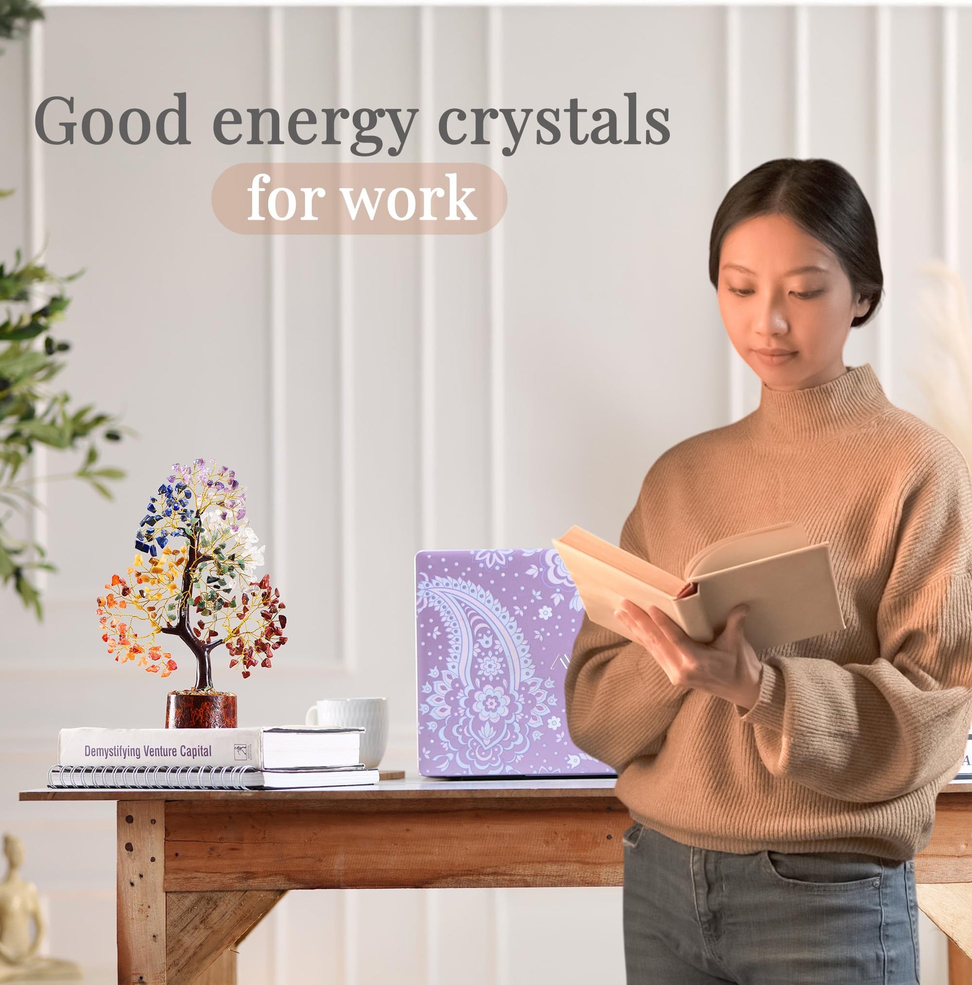 PYOR 7 Chakra Tree of Life, House Warming Gifts New Home, Birthday Gifts for Women, Healing Crystals, Money Tree, Home Office Decor, Office Desk Accessories, Crystals and Healing Stones