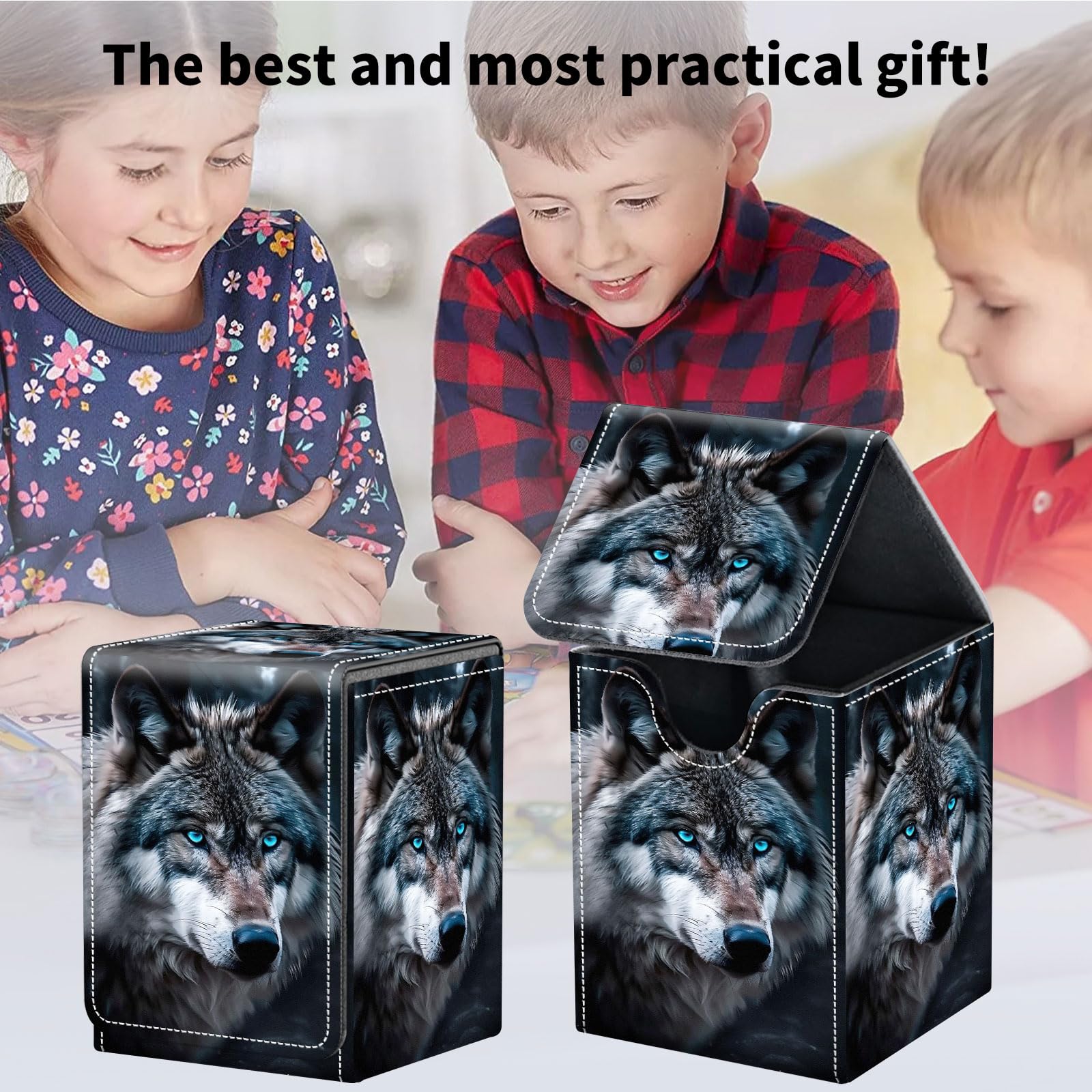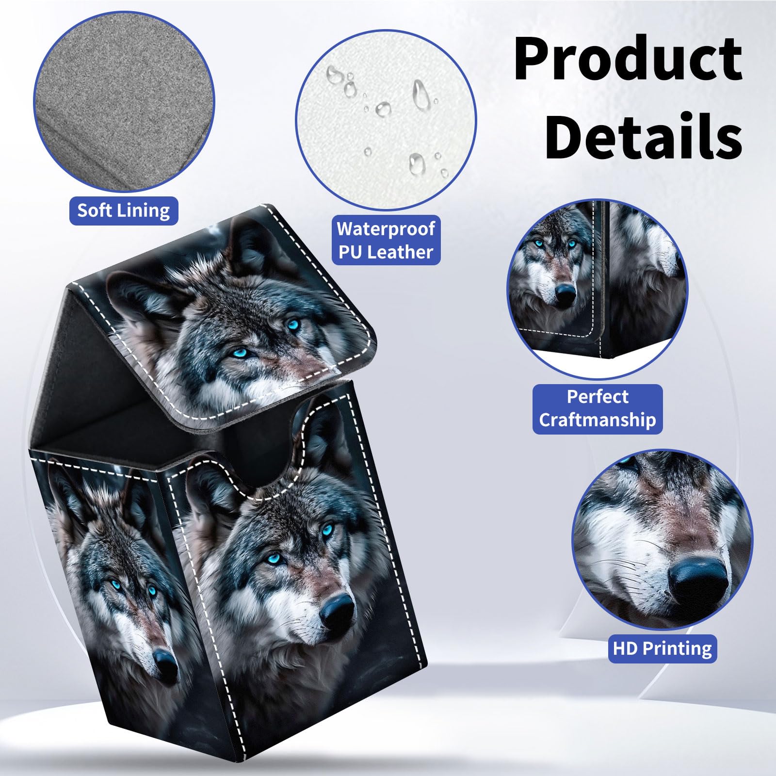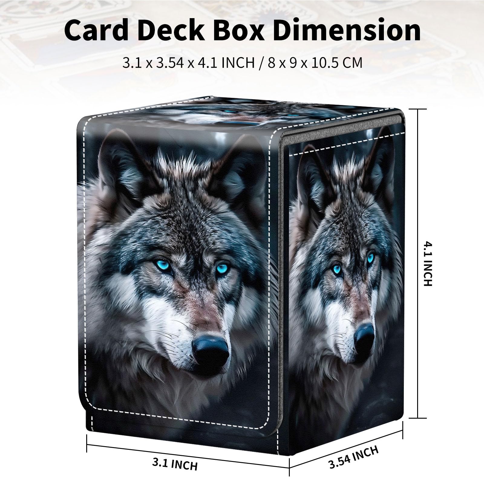 Qindaiwen Card Deck Box for Trading Cards, MTG Deck Box Fits 100+ Single Sleeved Cards, PU Leather Strong Magnet Card Deck Case Holder for Magic Commander TCG CCG, Wolf's Gaze