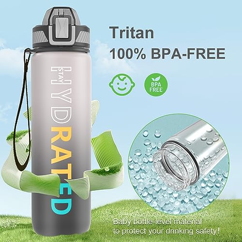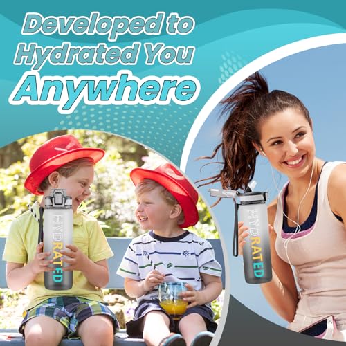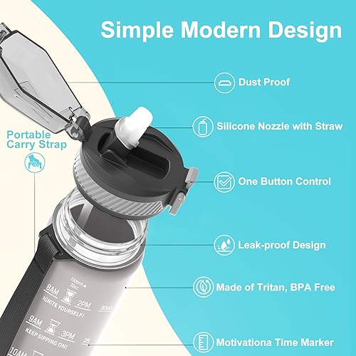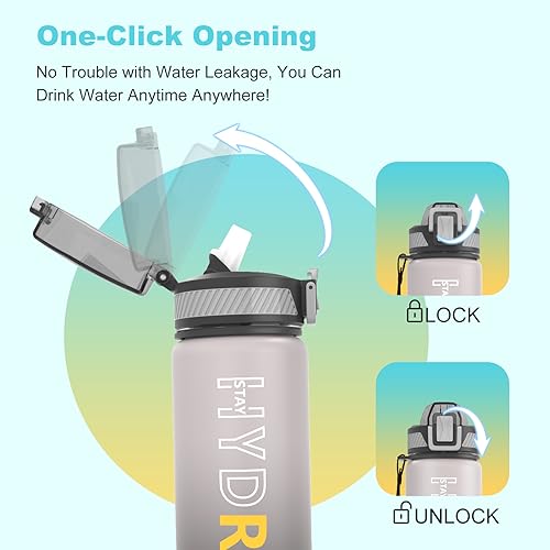 - Easily Open & Leakproof: Our motivational water bottles flip-top lid is designed with a secure lock, which effectively preventing dust and leak-proof. It can be easily opened with one hand. Our sports water bottles for school has a silicone nozzle with a straw inside to prevent turbulent water flow