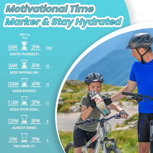 - Motivational Time Marker: QLUR 27 oz Water Bottles as your daily partner is designed with motivational quotes by the hour, it keeps your daily water intake on track. The inspirational water bottle helps you stay hydrated throughout the day