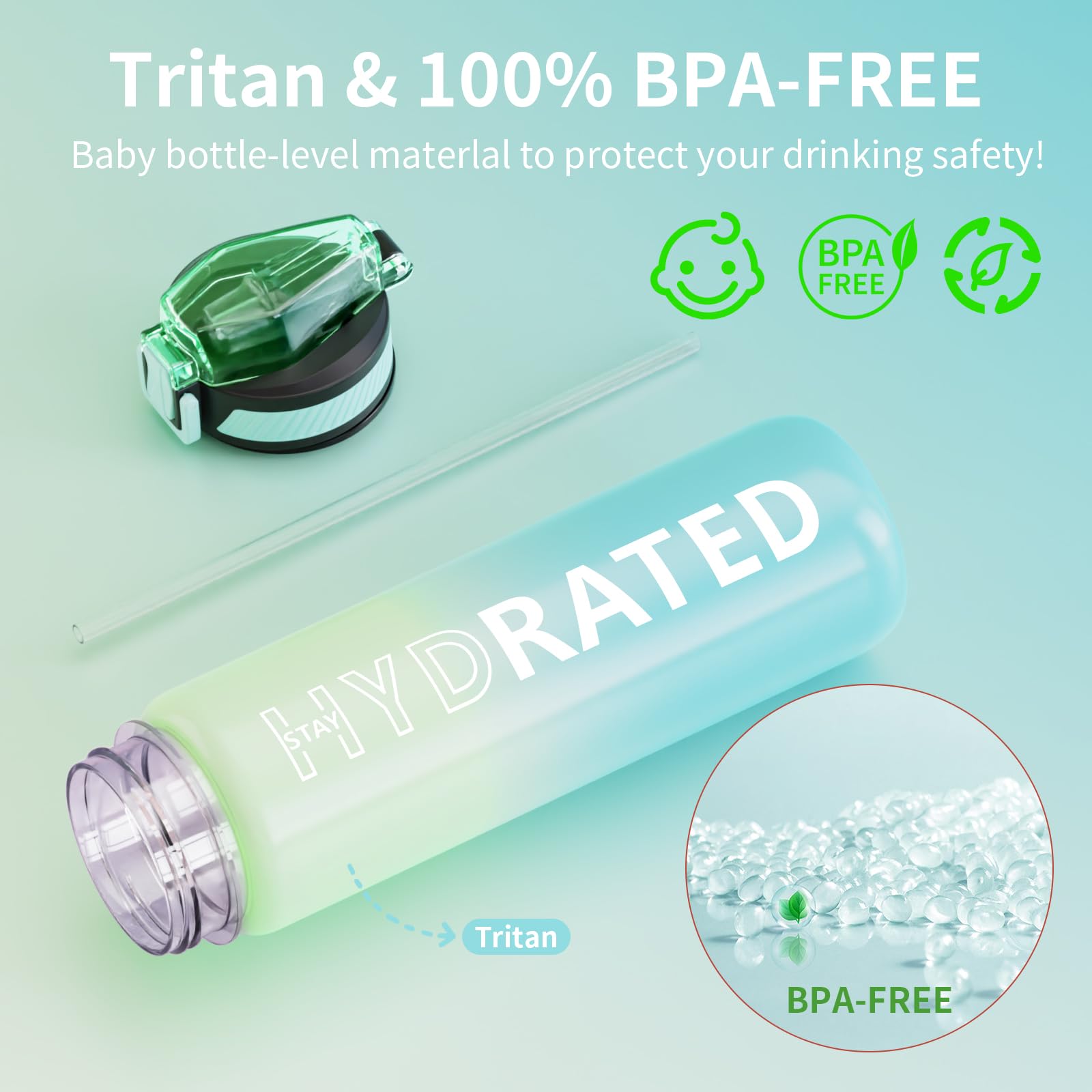 - BPA Free & Non-toxic: The reusable water bottles is made of food grade Tritan material--100% BPA free and non-toxic. The high quality tritan water bottles can keep your safty. Sports water bottle does not generate odour, chemical or unpleasant taste. It suitable for 14°F~176°F