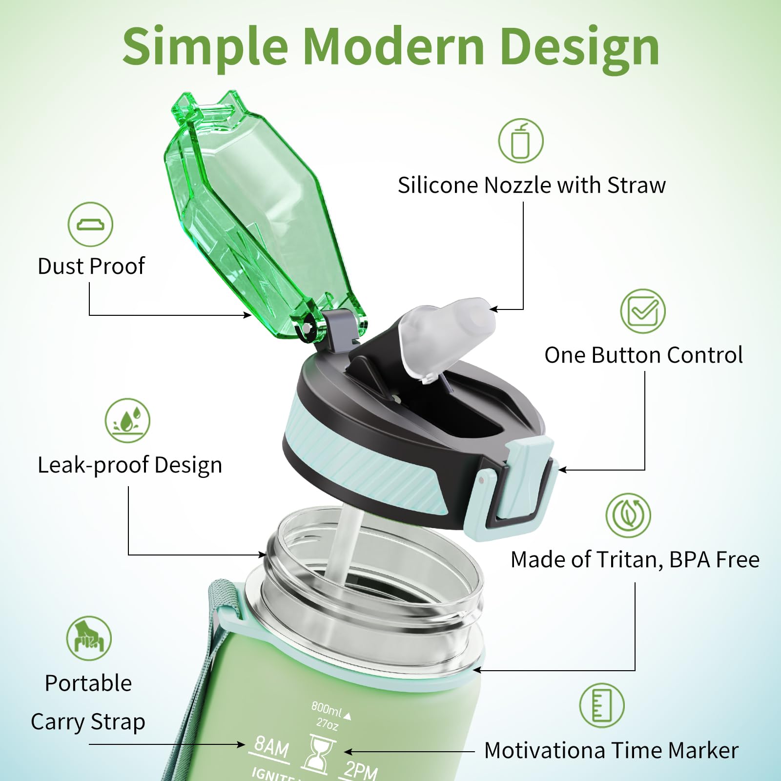 - Easily Open & Leakproof: Our motivational water bottles flip-top lid is designed with a secure lock, which effectively preventing dust and leak-proof. It can be easily opened with one hand. Our sports water bottles for school has a silicone nozzle with a straw inside to prevent turbulent water flow