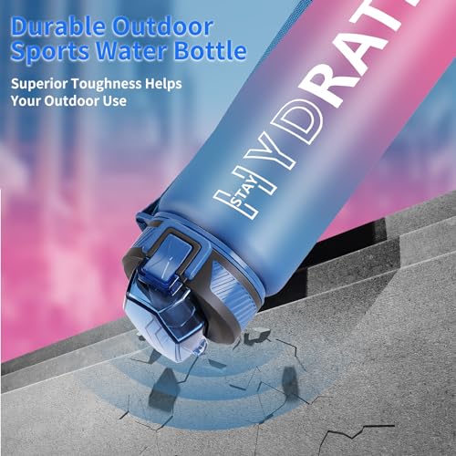 - Easily Open & Leakproof: Our motivational water bottles flip-top lid is designed with a secure lock, which effectively preventing dust and leak-proof. It can be easily opened with one hand. Our sports water bottles for school has a silicone nozzle with a straw inside to prevent turbulent water flow