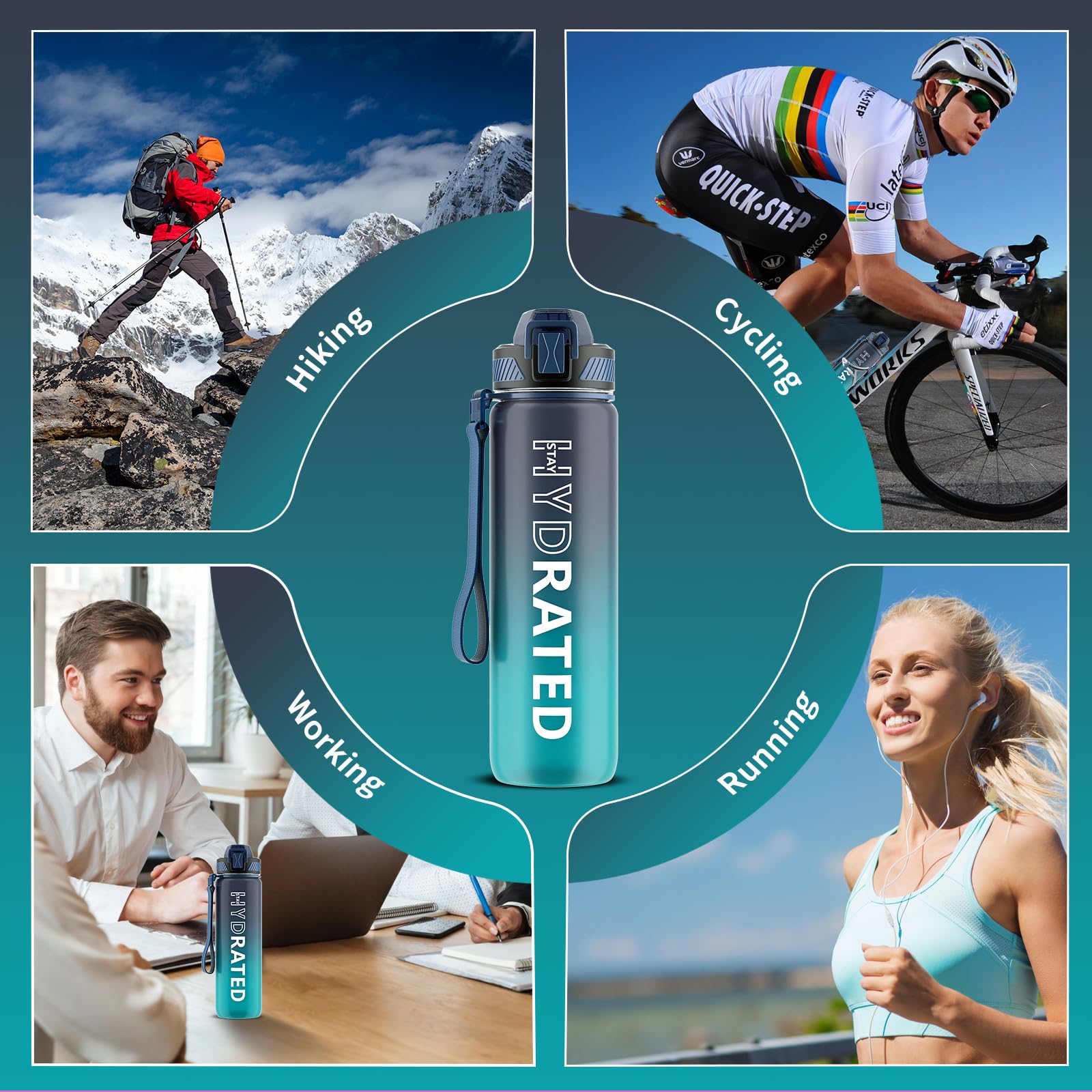 - Easily Open & Leakproof: Our motivational water bottles flip-top lid is designed with a secure lock, which effectively preventing dust and leak-proof. It can be easily opened with one hand. Our sports water bottles for school has a silicone nozzle with a straw inside to prevent turbulent water flow