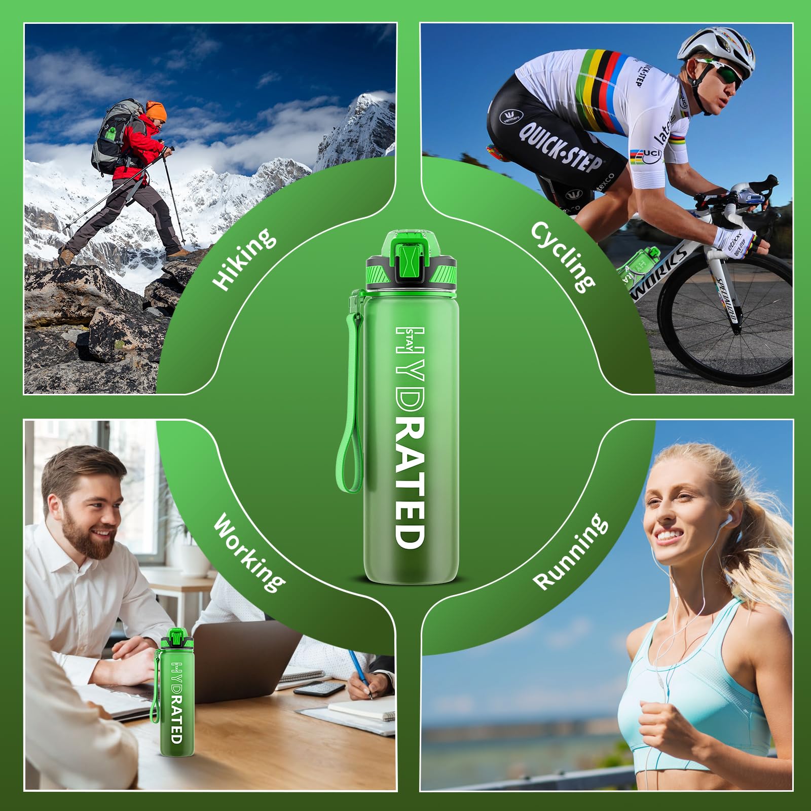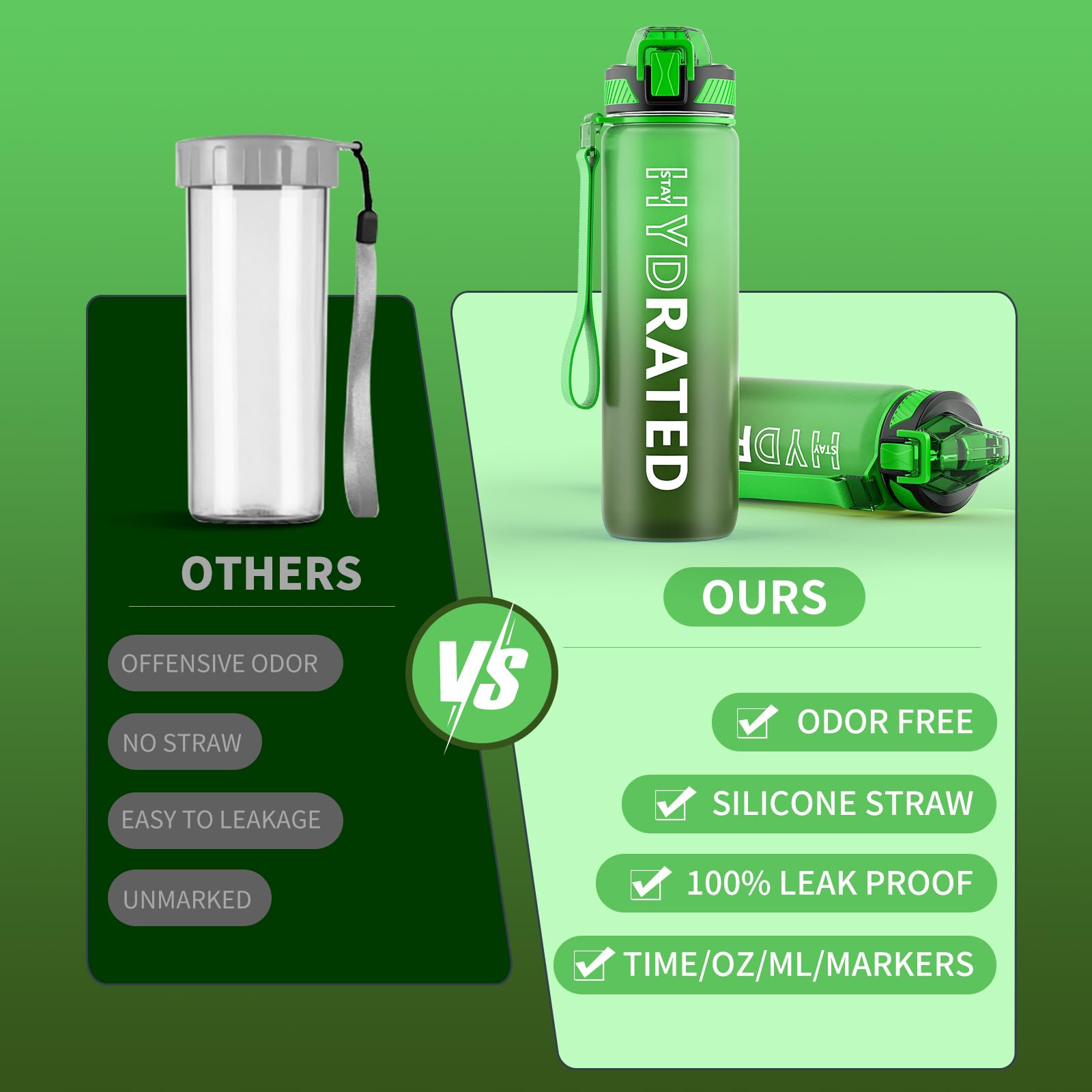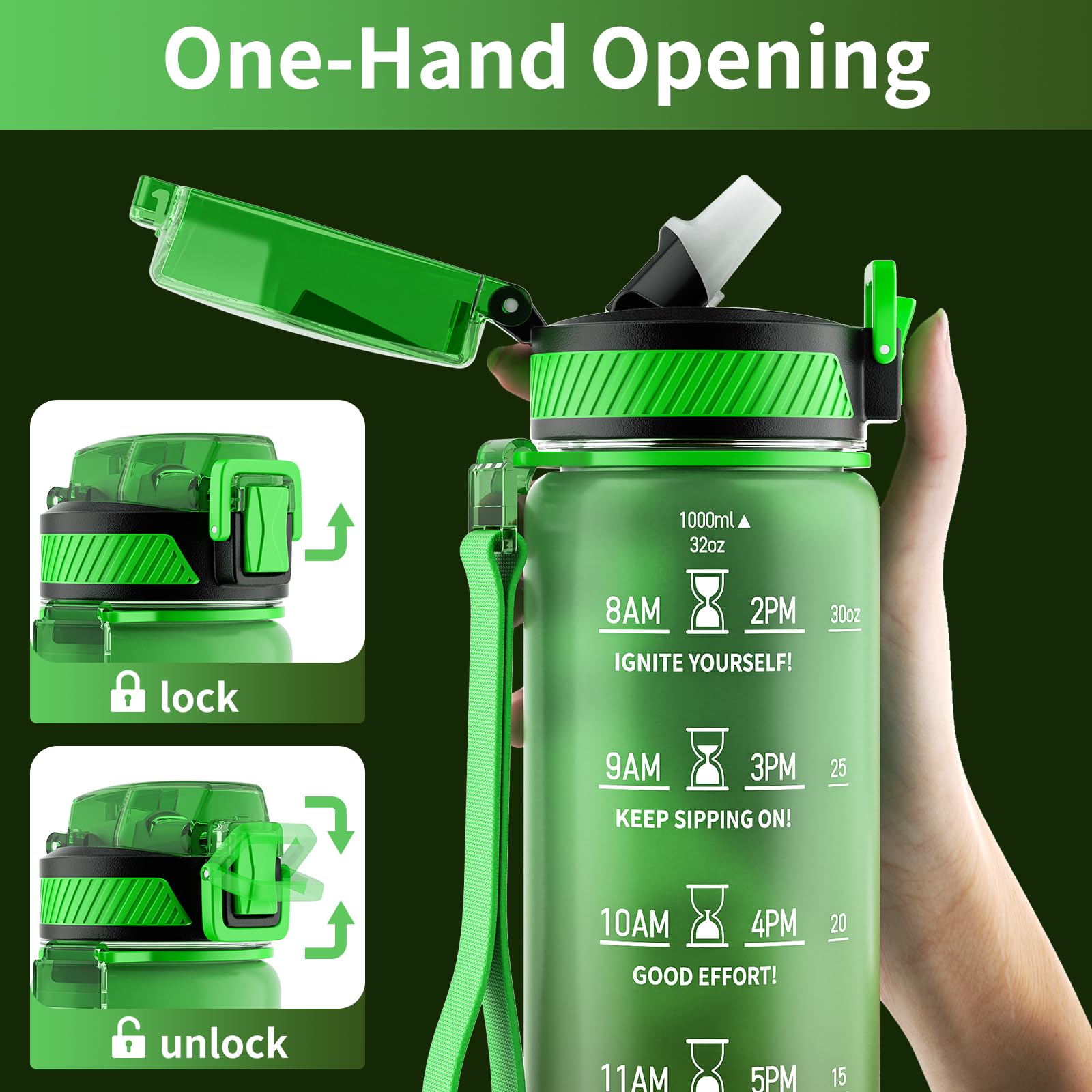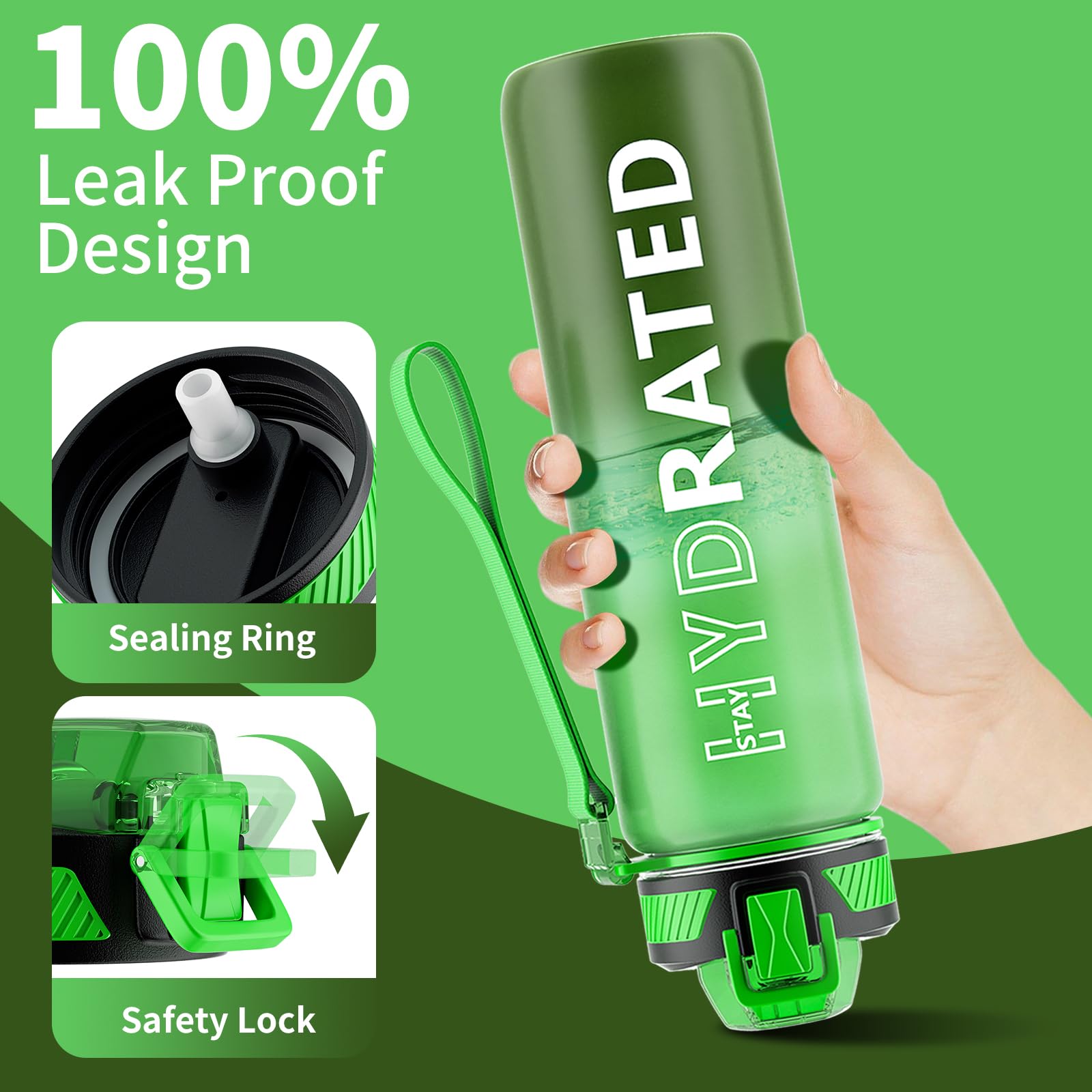 - Easily Open & Leakproof: Our motivational water bottles flip-top lid is designed with a secure lock, which effectively preventing dust and leak-proof. It can be easily opened with one hand. Our sports water bottles for school has a silicone nozzle with a straw inside to prevent turbulent water flow