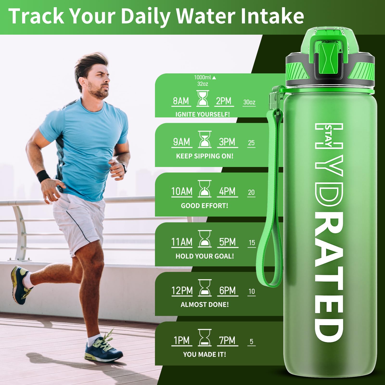 - Motivational Time Marker: QLUR 32 oz Water Bottles as your daily partner is designed with motivational quotes by the hour, it keeps your daily water intake on track. The inspirational water bottle helps you stay hydrated throughout the day