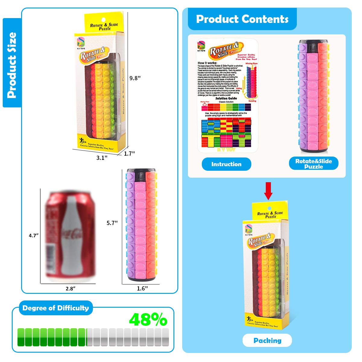 - 【Non-toxic,high-quality,safety】Nothing compares to the quality,color and unique design of the R.Y.TOYS cylinder puzzle gifts-All products have a variety of international toy quality and safety certifications