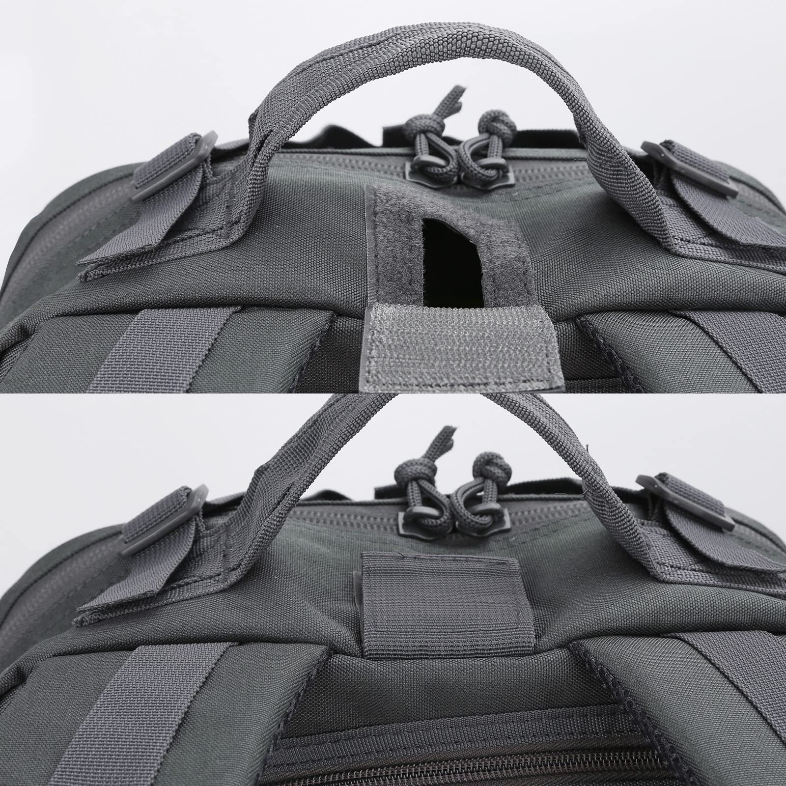 - TACTICAL BAG PACK: The back of tactical bag and adjustable shoulder straps are ventilated mesh padded, breathable and comfortable. Tactical backpack for men with double-stitched, Heavy duty zippers and utility-style cord pulls, Side and front load compression system to adjust and tighten backpack.