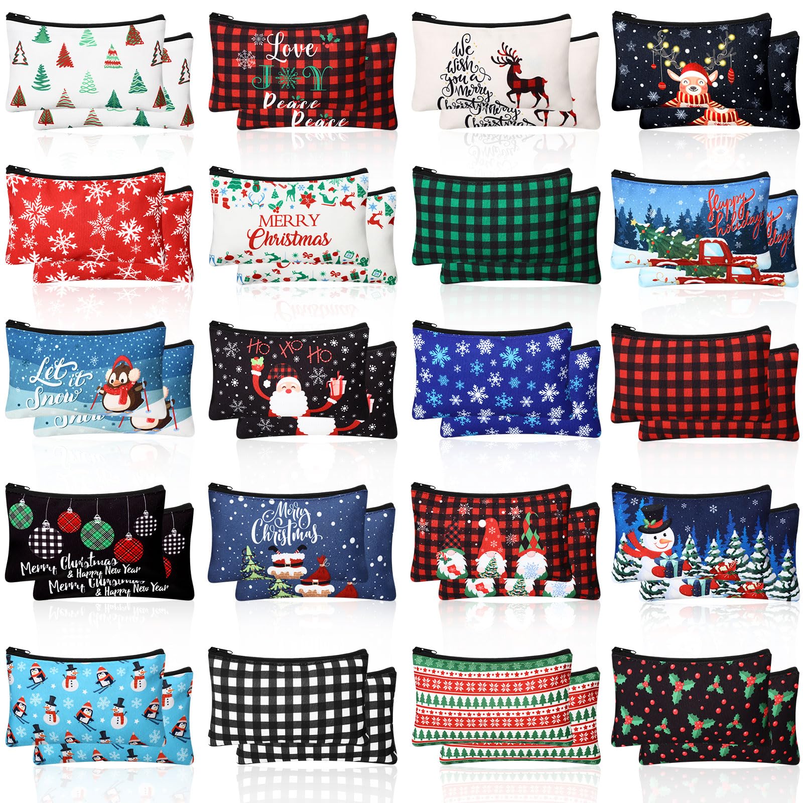 - Christmas Cosmetic Bags Bulk: the package contains 60 Christmas makeup bags in 20 styles, with sufficient quantity to meet your gift giving needs during the holiday season; This quantity ensures that you have enough Christmas makeup bags to give to all your loved ones during this holiday season