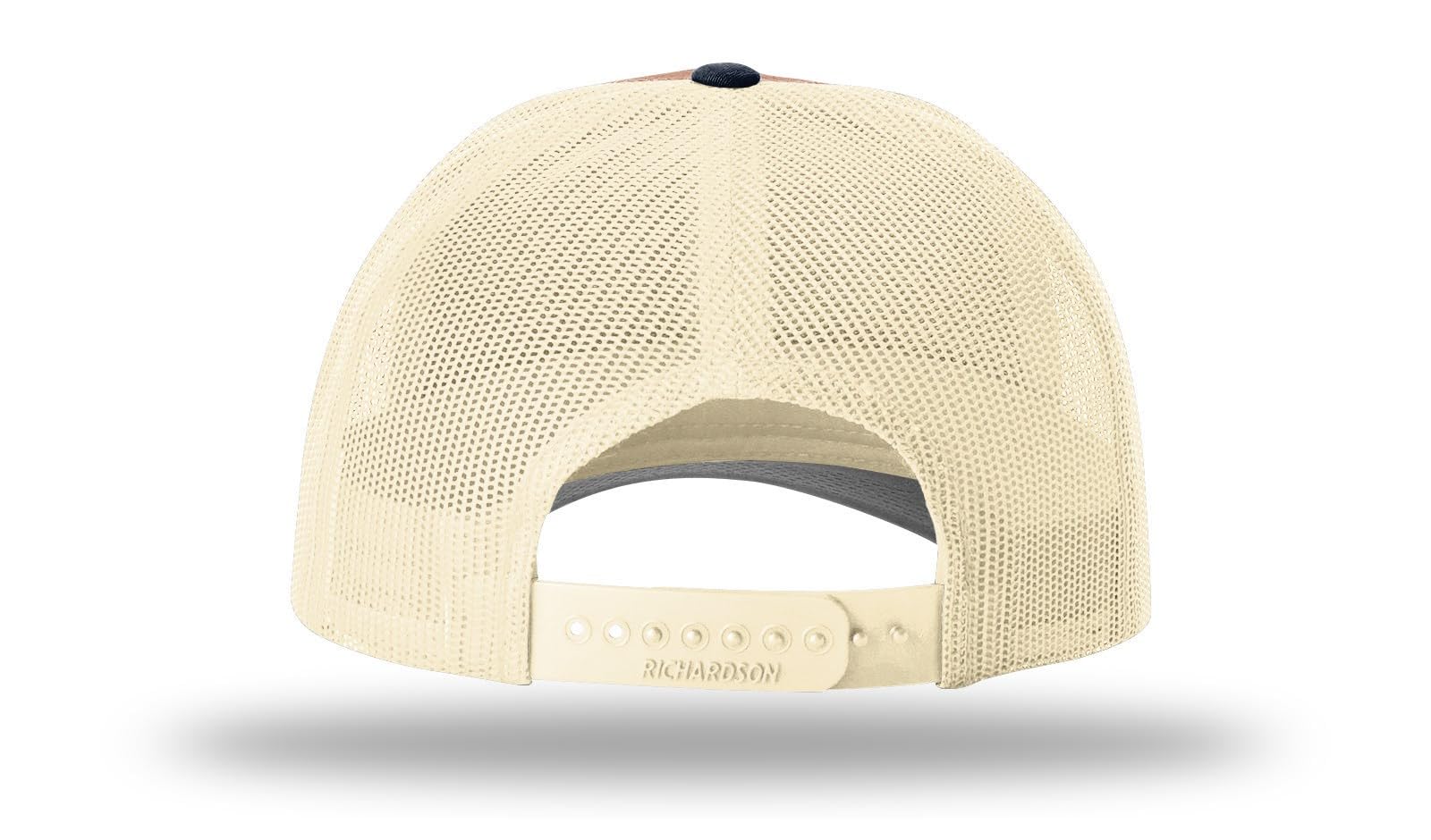 Richardson 115 Low Profile Trucker Hat Snapback Cap Adjustable Baseball Hat Blank Hat Bulk Hats - Dark Orange/Birch/Blue