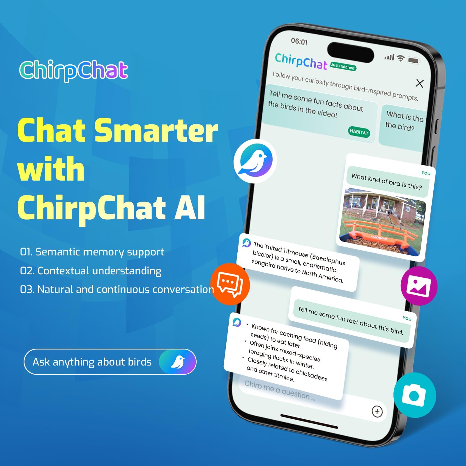 - 【World’s First Interactive Birding App】RichBird smart hummingbird feeder with camera seamlessly pairs with CoolFly – the first-ever app designed for interactive birdwatching! Enjoy vibrant community features like video sharing, likes, comments, and group chats with fellow bird lovers. Explore our extensive bird database packed with species traits, authentic bird calls, diet details, and more.
