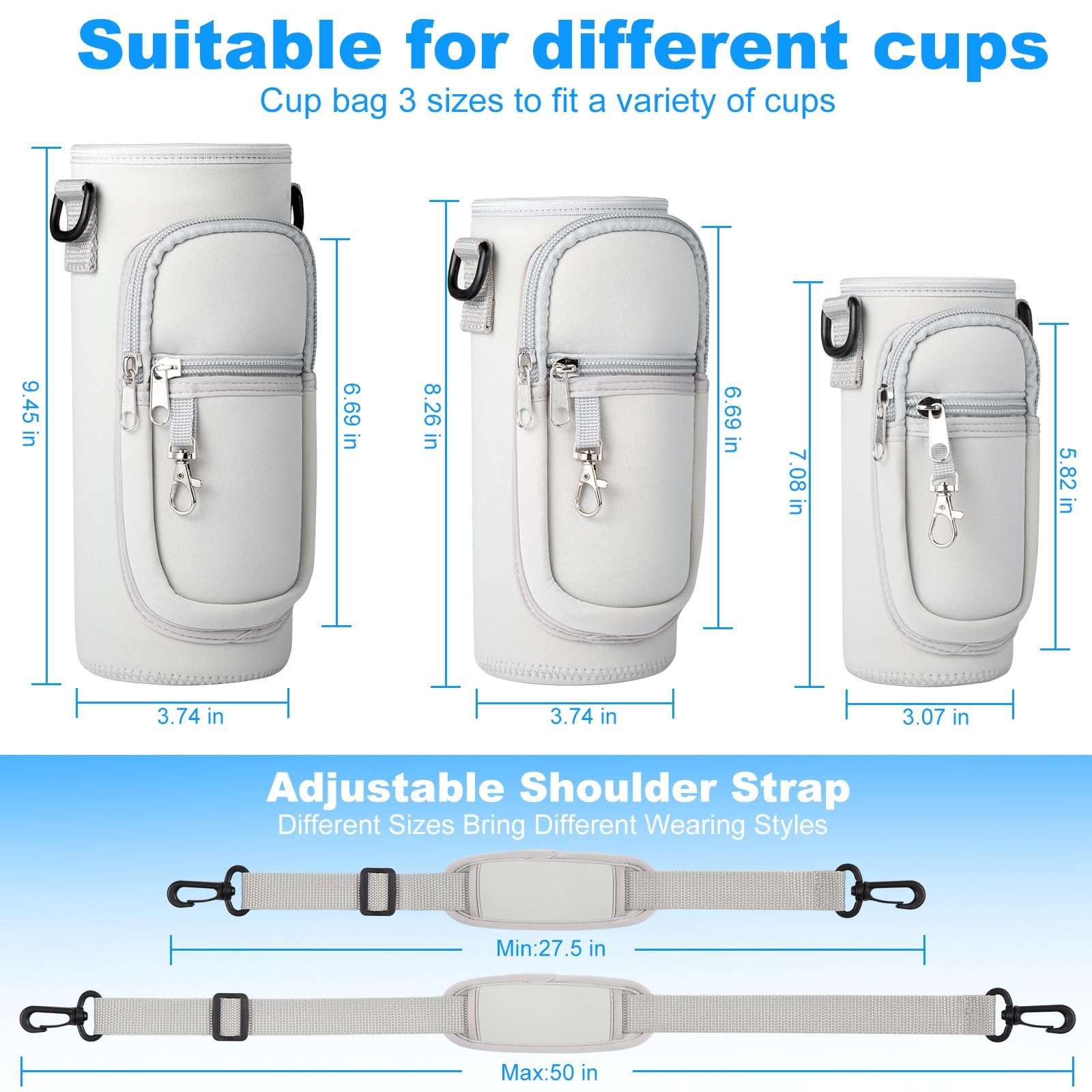Perfect for adults. The adjustable shoulder hand strap fits all body types, you can wear over the shoulder, cross chest or just hand carry. It can be used for walking, running, cycling, gym and so on.