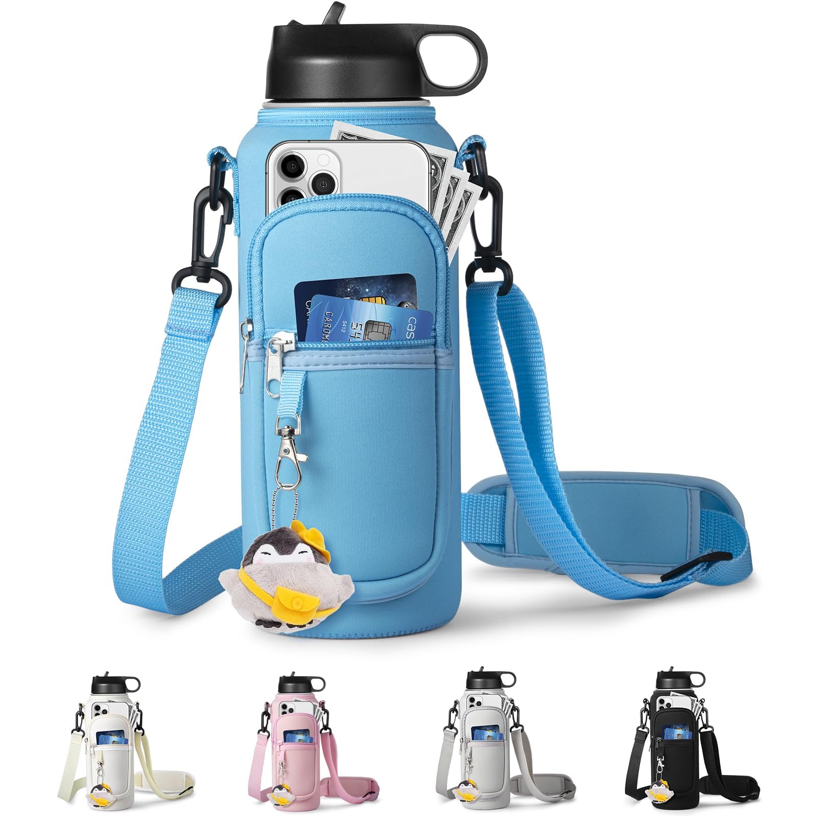 RRegeny Water Bottle Holder with Strap for Hydroflask 32oz 40oz Insulated Water Bottle, Carrier Sling Bag with Phone Pocket Water Bottle Sleeve for Men Women Hiking Camping Travelling