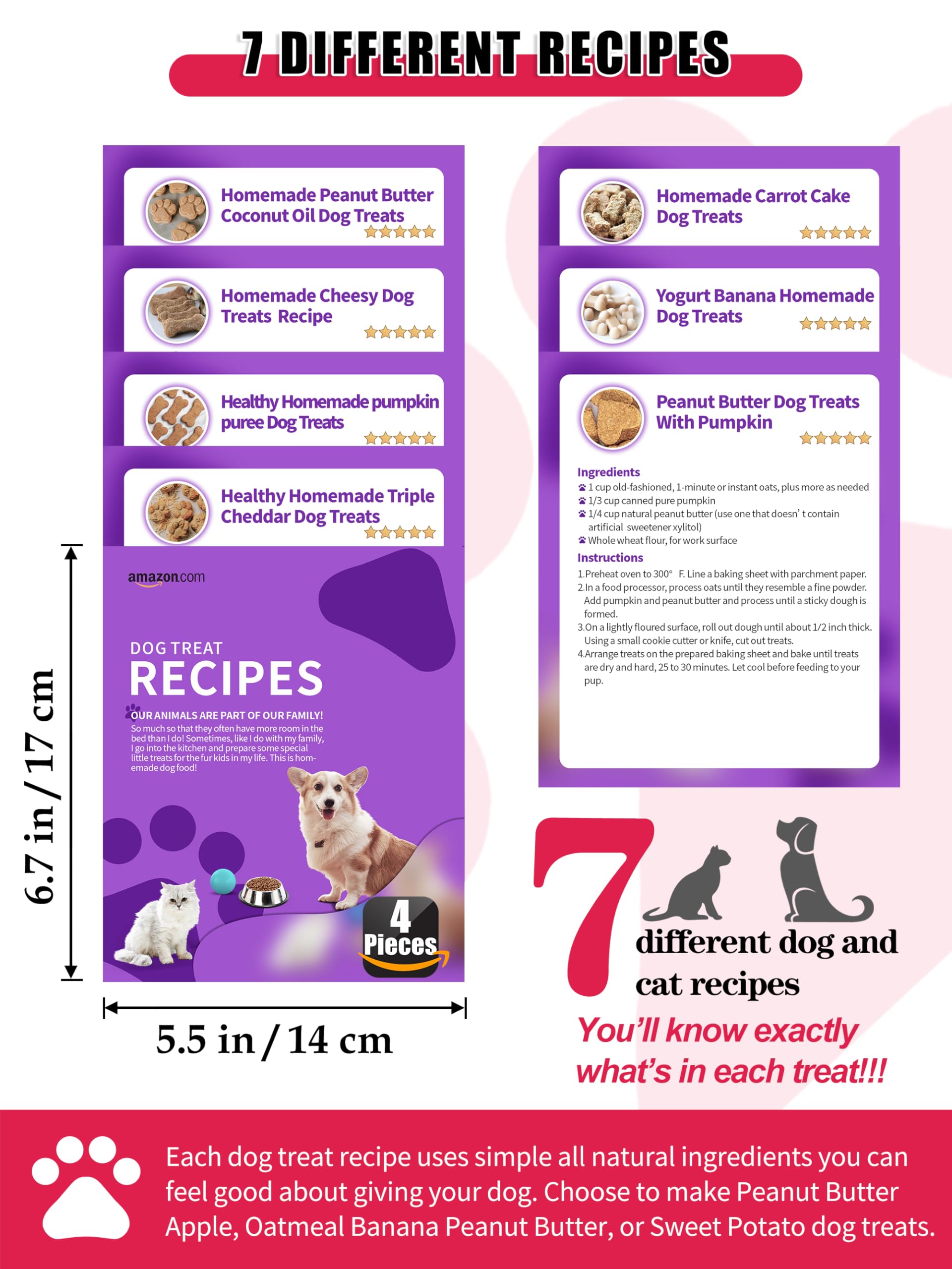 - 【Peace of Mind】You can choose oatmeal/banana/peanut butter recipe with recipes that are super easy, tasty and quick to make. Use ingredients you probably already have at home. You'll know exactly what's in each treat (for dog&cat with food allergies)。