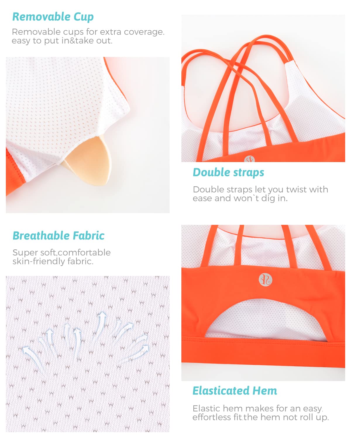 RUNNING GIRL Strappy Sports Bra for Women, Sexy Crisscross Back Medium Support Yoga Bra with Removable Cups (WX2354Vermillion Orange, XS)