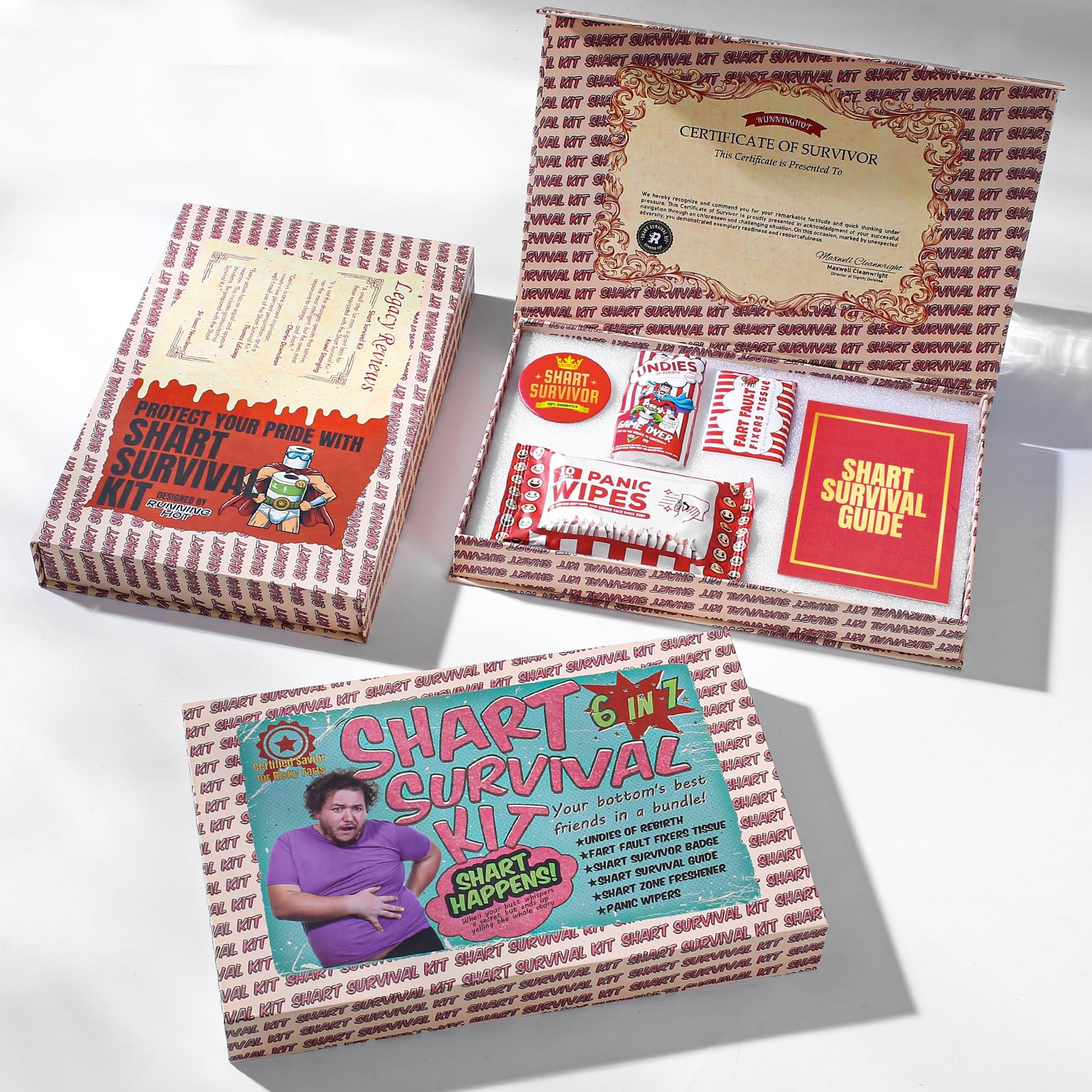 RUNNING HOT Shart Survival Kit, Funny Gifts for Men, White Elephant Gift, Gag Prank Box, Hilarious Gifts, Novelty Gift Set for for Family Friends, 6 in 1, Survival Guide & More