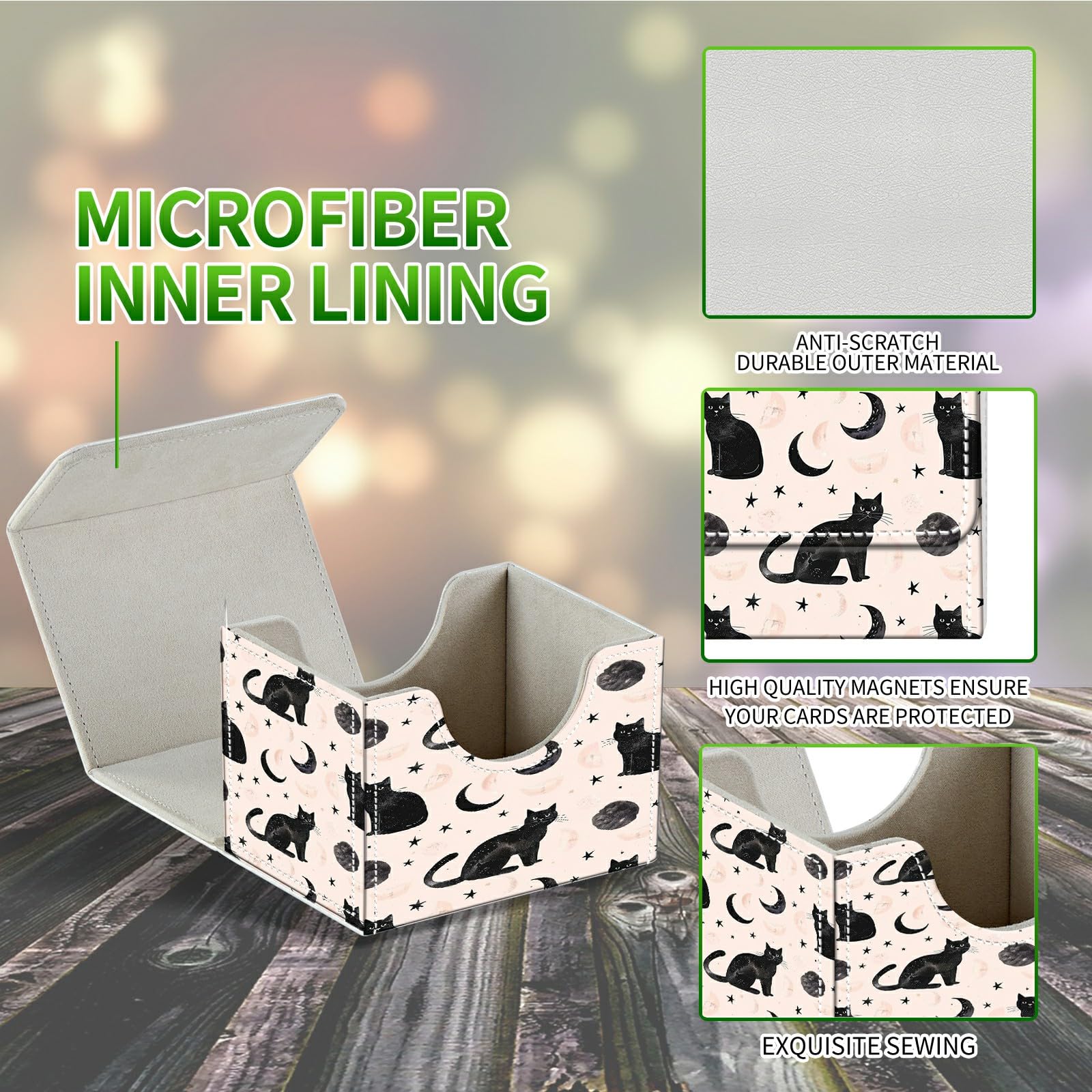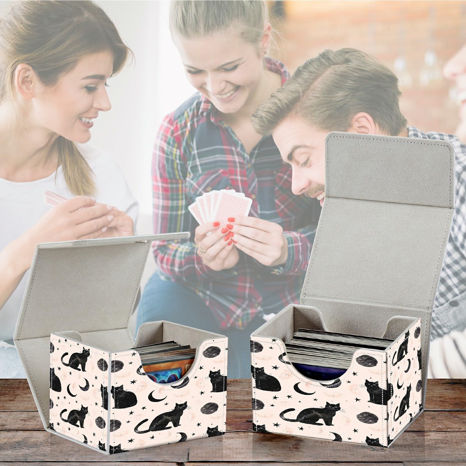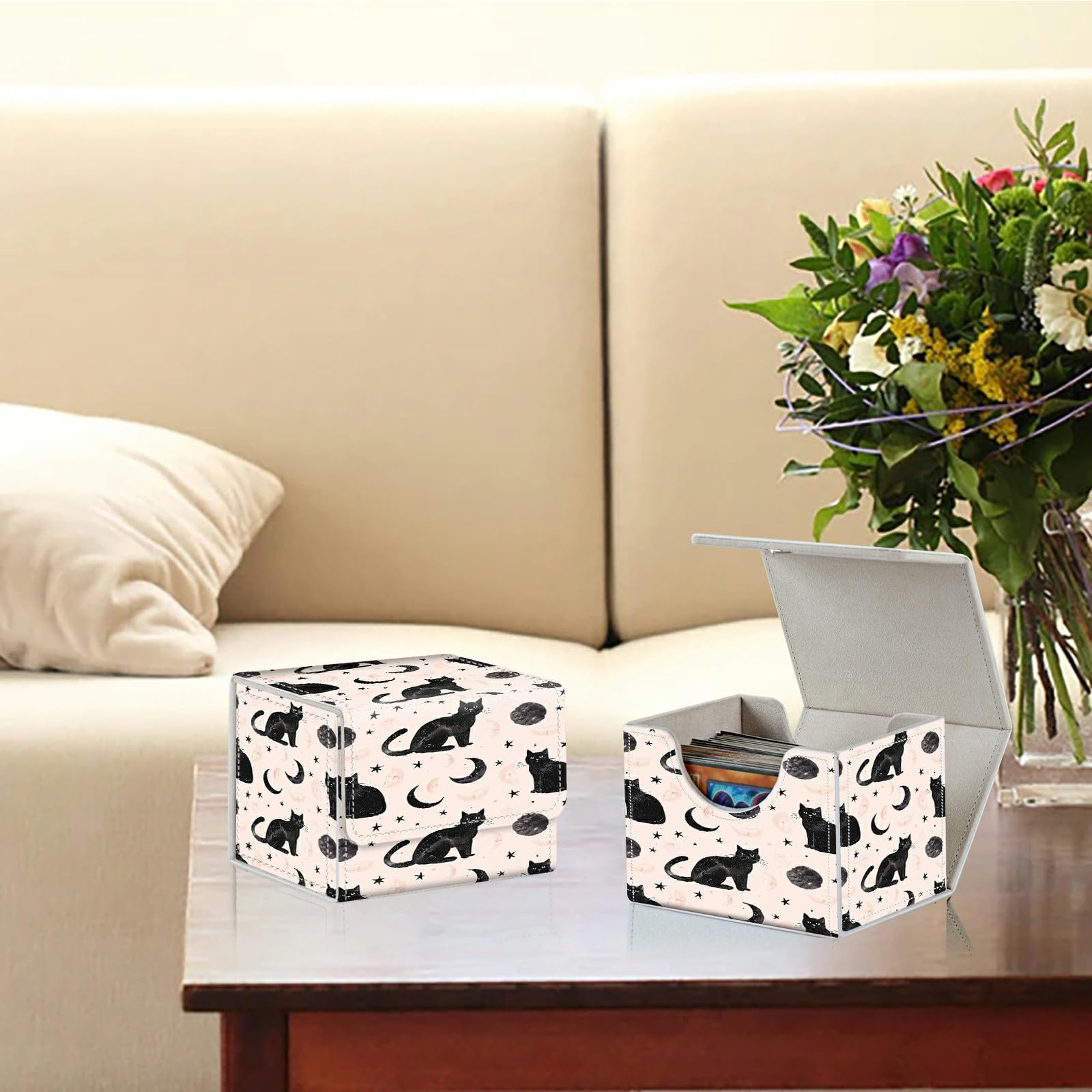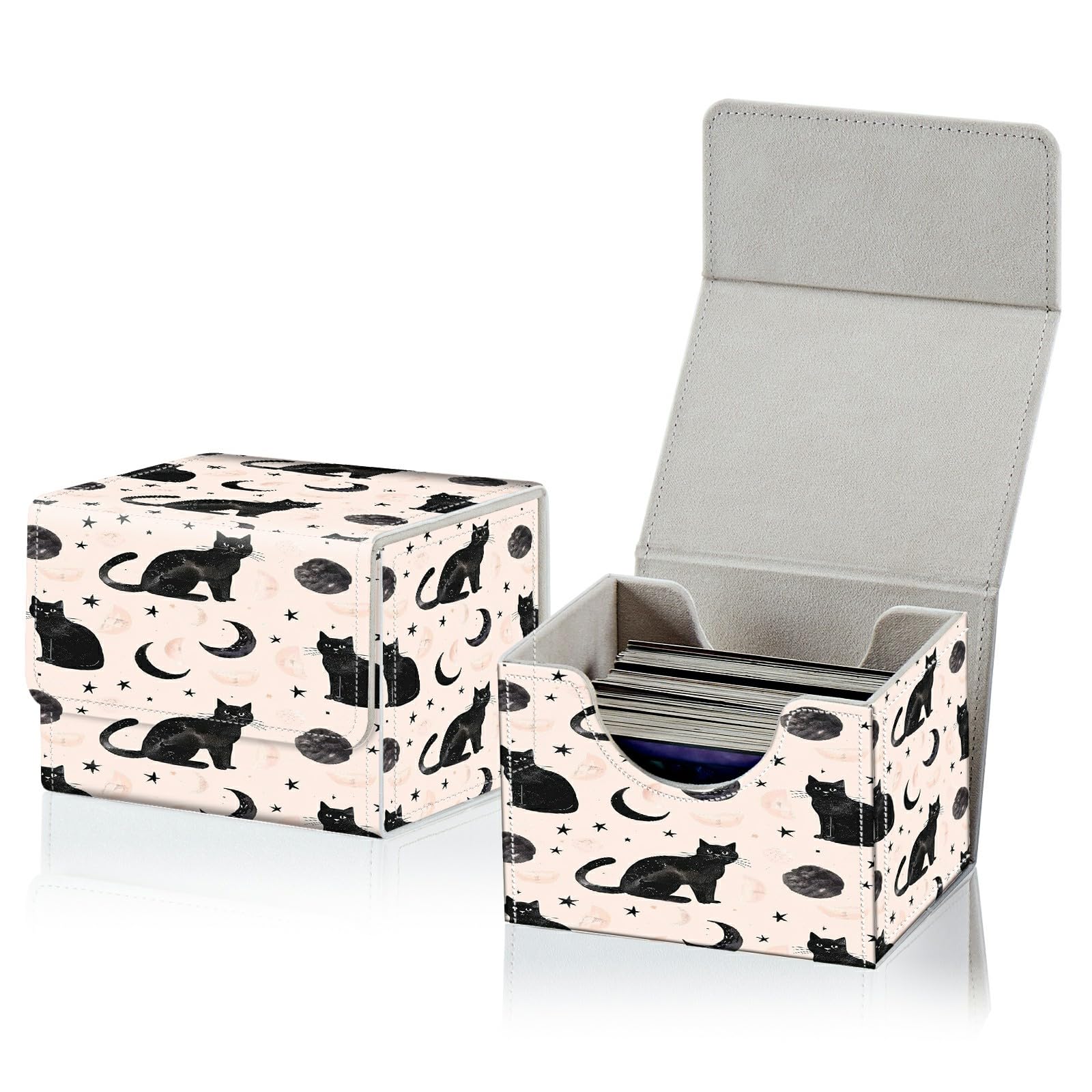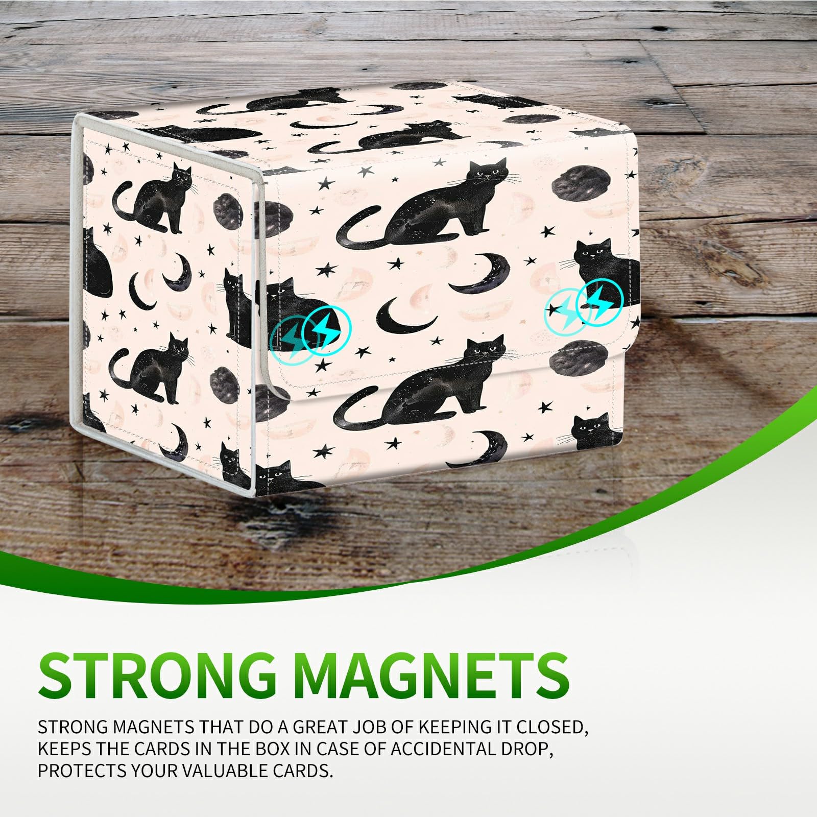 RWUTYTIUL Card Deck Box for MTG Cards, Card Storage Box Fits 100+ Sleeved Cards, PU Leather Large Size Strong Magnet Card Deck Case Holder for Board Game Magic MTG TCG CCG, Black Cat