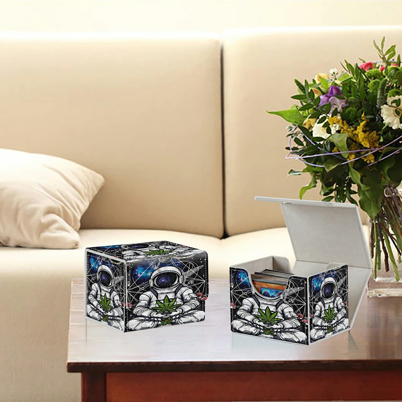 RWUTYTIUL Card Deck Box for MTG Cards, Card Storage Box Fits 100+ Sleeved Cards, PU Leather Large Size Strong Magnet Card Deck Case Holder for Board Game Magic MTG TCG CCG, Planet Man