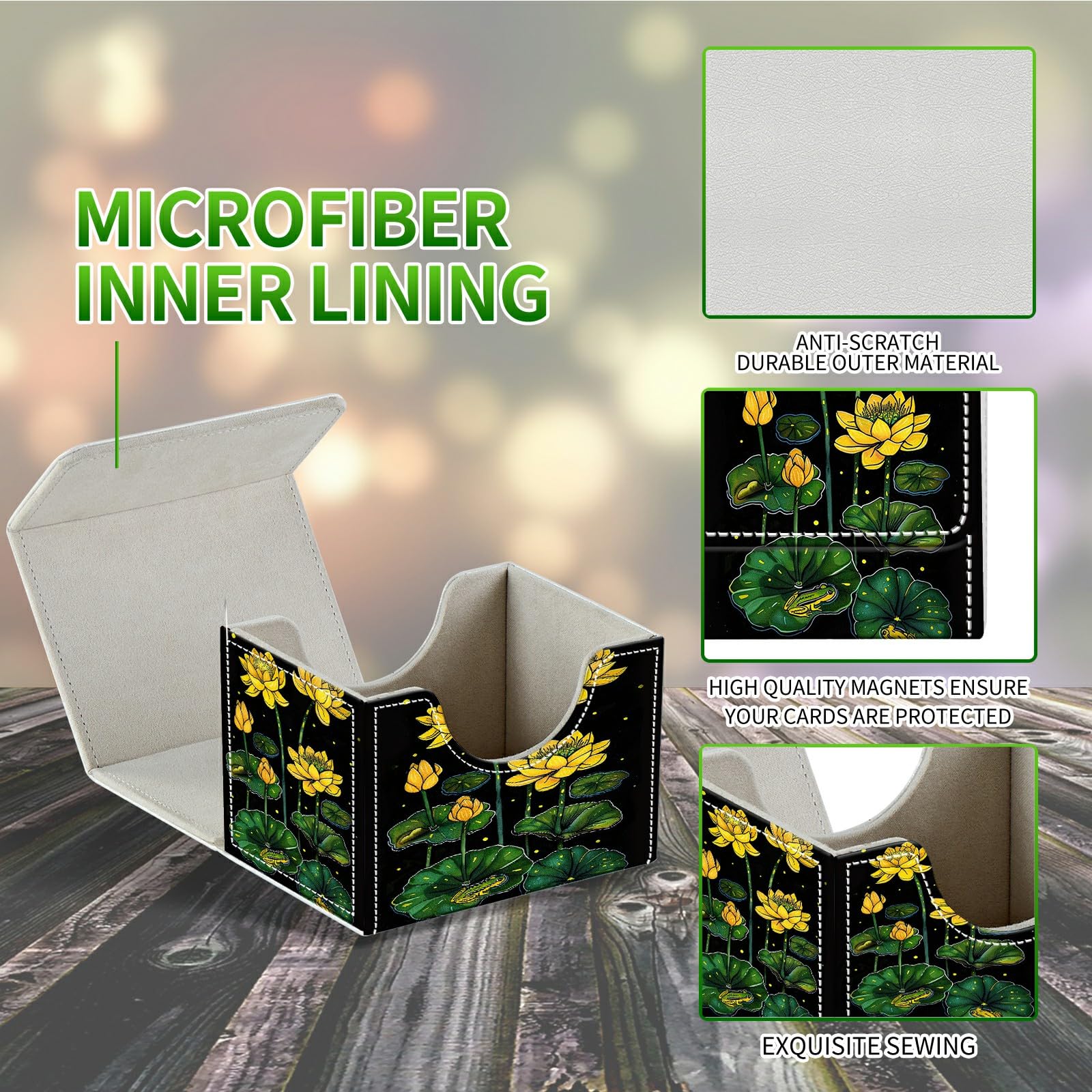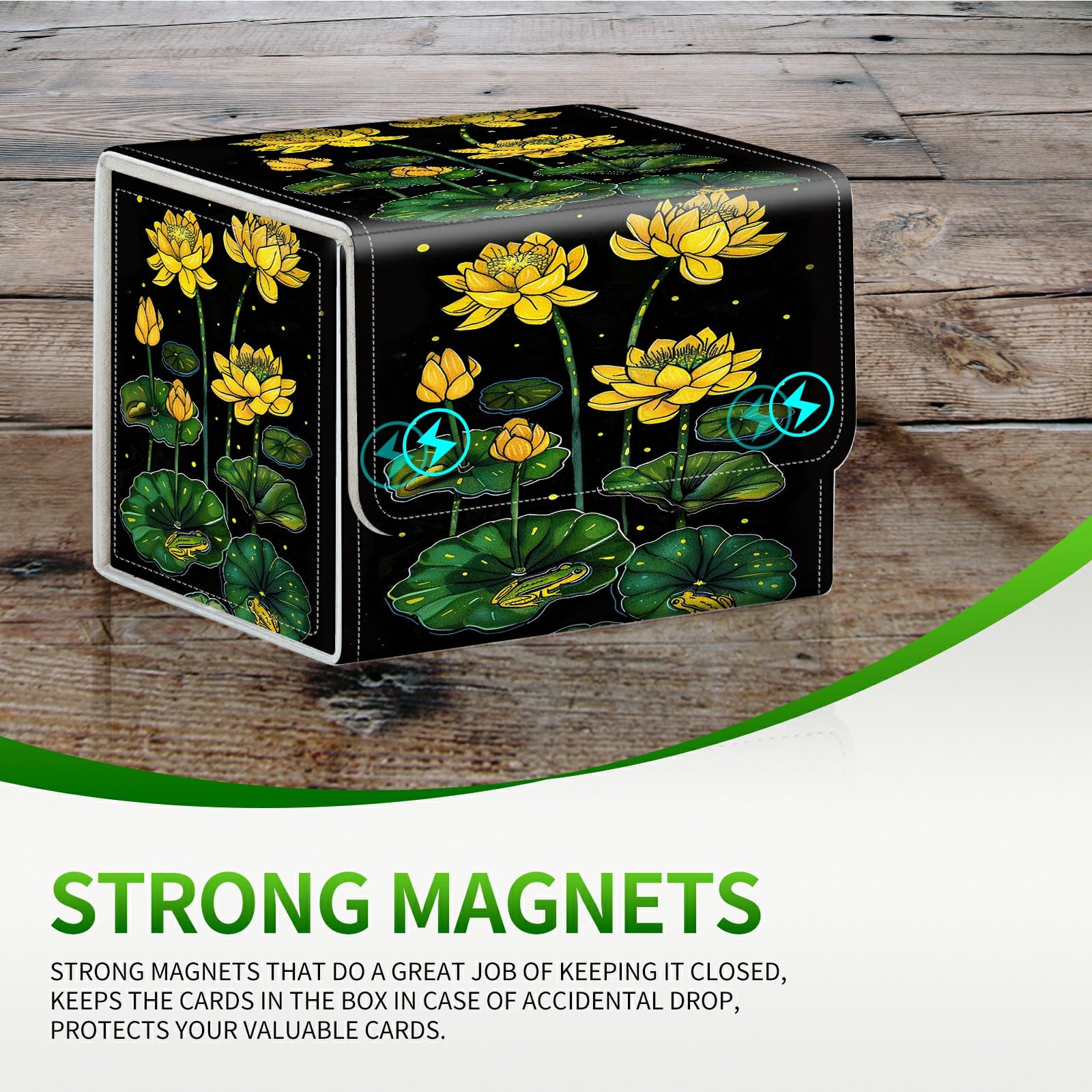 RWUTYTIUL Card Deck Box for MTG Cards, Card Storage Box Fits 100+ Sleeved Cards, PU Leather Large Size Strong Magnet Card Deck Case Holder for Board Game Magic MTG TCG CCG, Yellow Lotus
