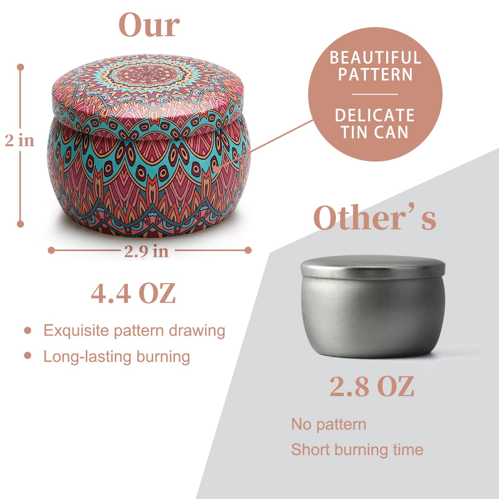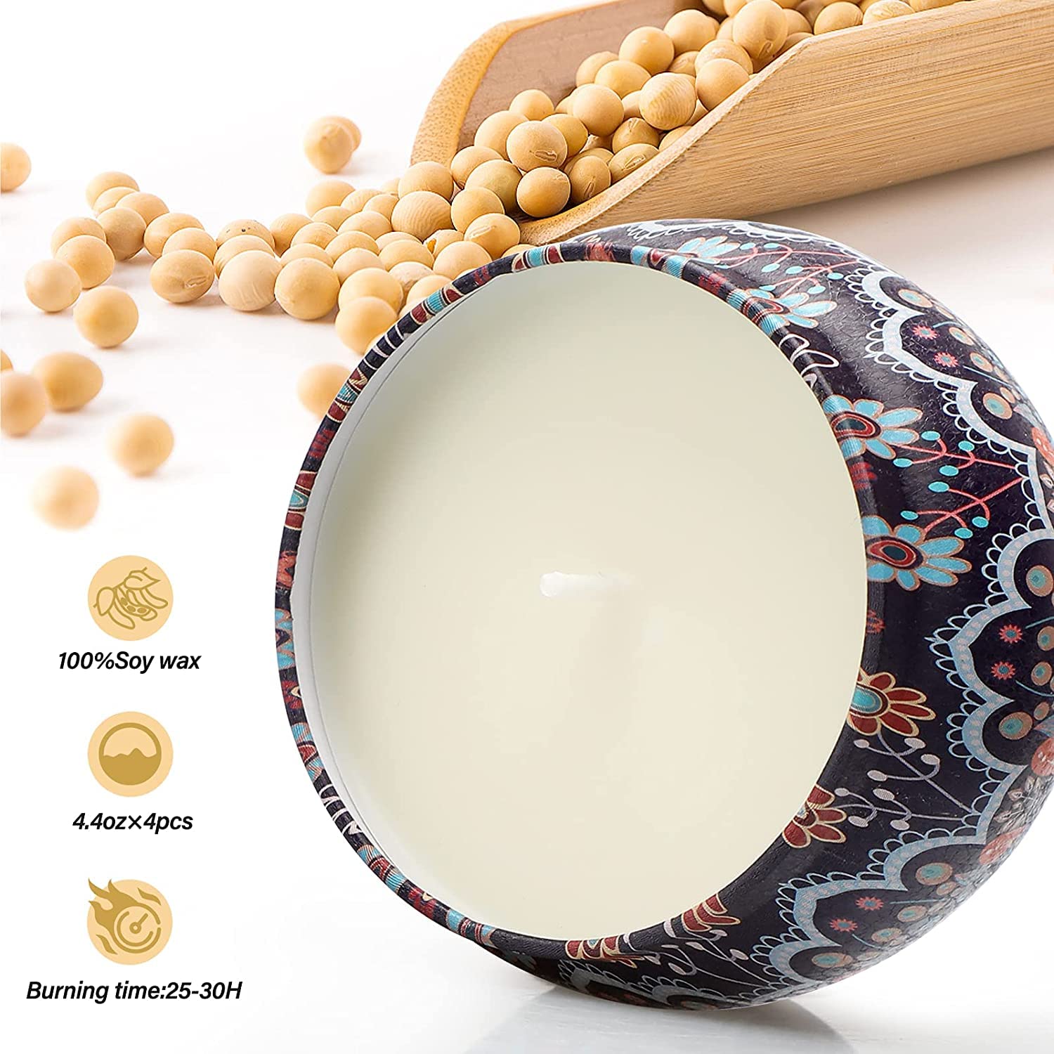 - Candles for Home Scented-4.4oz per candle. Working hours are 30 hours. More than 120 hours in total. Trimming the wick to increase time and Uniform combustion. Aromatherapy candles adopt a portable design, scented candles are easy to carry, and are a good helper for indoor, outdoor, outings, and candlelight dinners.