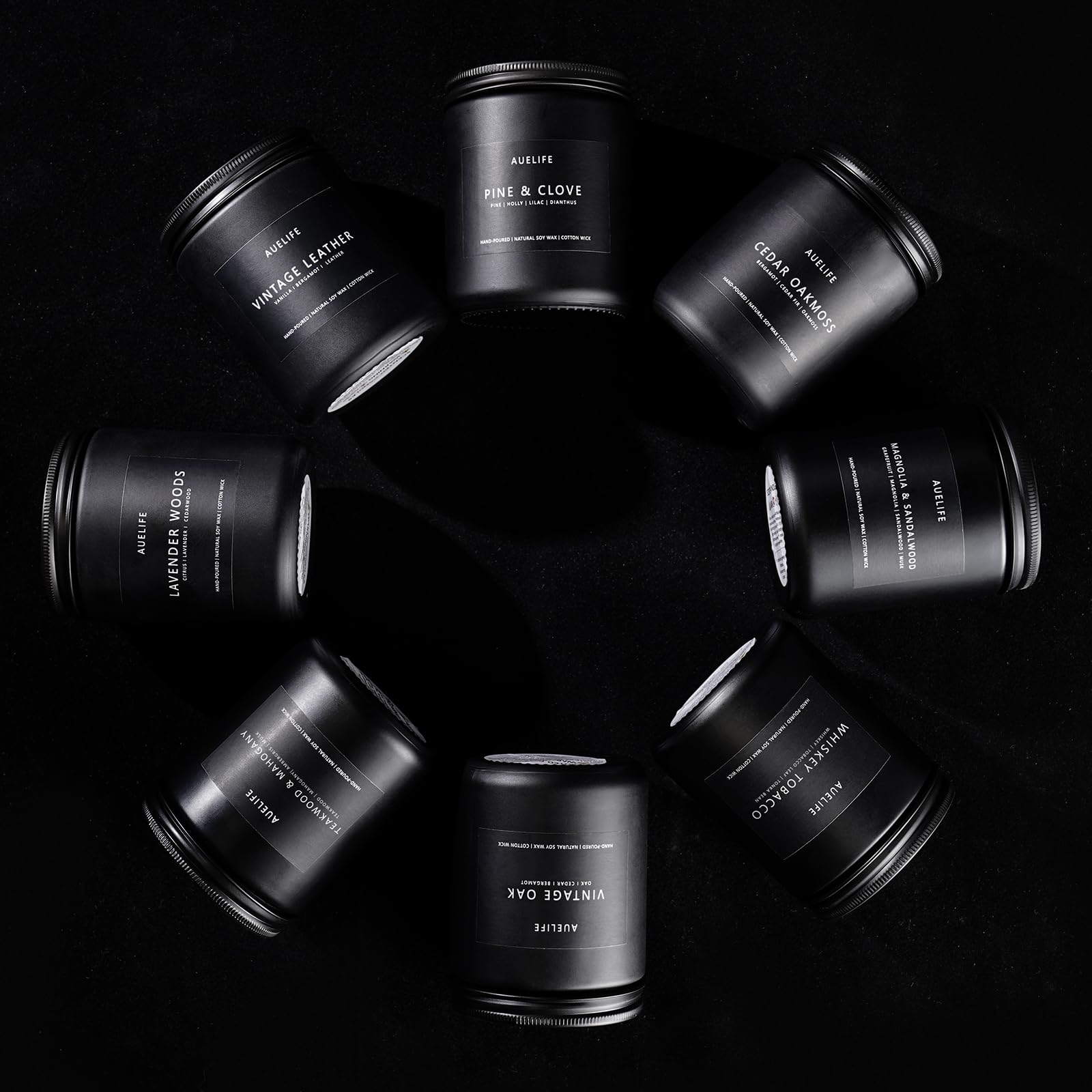 - The Aesthetics of Men Candles -- The men candle’s aesthetic matches its bold scent. The candle housed in sleek, masculine containers -matte black jar, these men candles make a stylish statement in any space. The rugged yet refined look fits well in a study, a living room, or a man cave. Even if you don’t drink whiskey or smoke cigars, the stylish design and alluring fragrance will undoubtedly enhance the décor and atmosphere of any room.