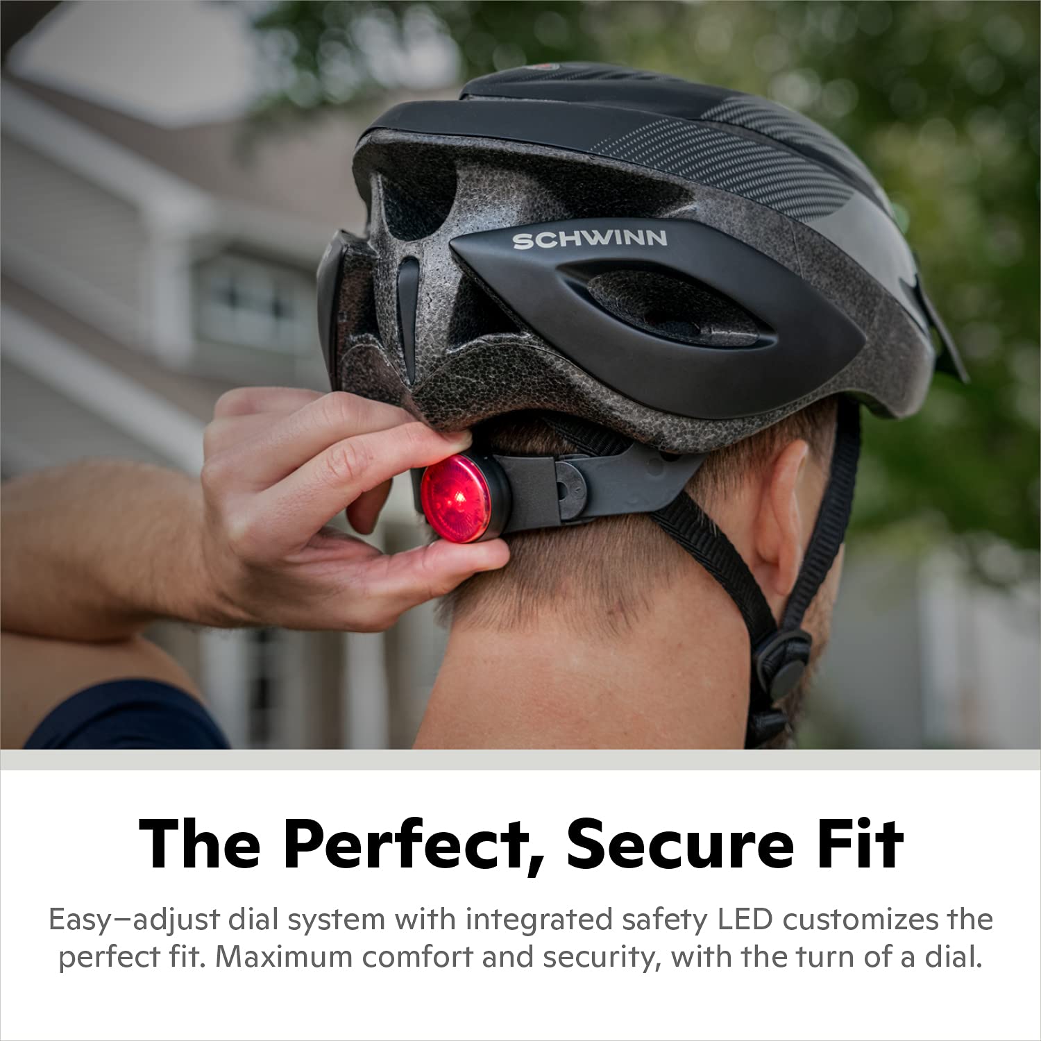 Details: Light up the way with the Schwinn Thrasher Bicycle Helmet with LEDs, a helmet that's as stylish as it is protective. The Thrasher features Schwinn’s 360 Comfort System with dial fit and full range padding for a customizable fit. Plus, full-shell coverage provides extra protection. The Thrasher also features a classic angular design that never goes out of style, while 20 thoughtfully placed vents offer maximum ventilation, so you’ll stay cool and comfortable even on warm summer rides. But that’s not all: this Thrasher comes with an integrated rear light for increased safety on nighttime rides. Choose between steady and flashing modes by simply pressing on the light. Enjoy a helmet that looks great and protects your noggin with the Thrasher. Enjoy the freedom of riding with Schwinn.