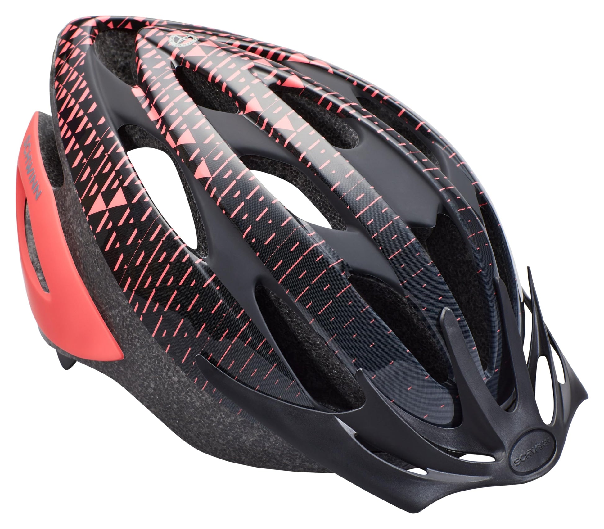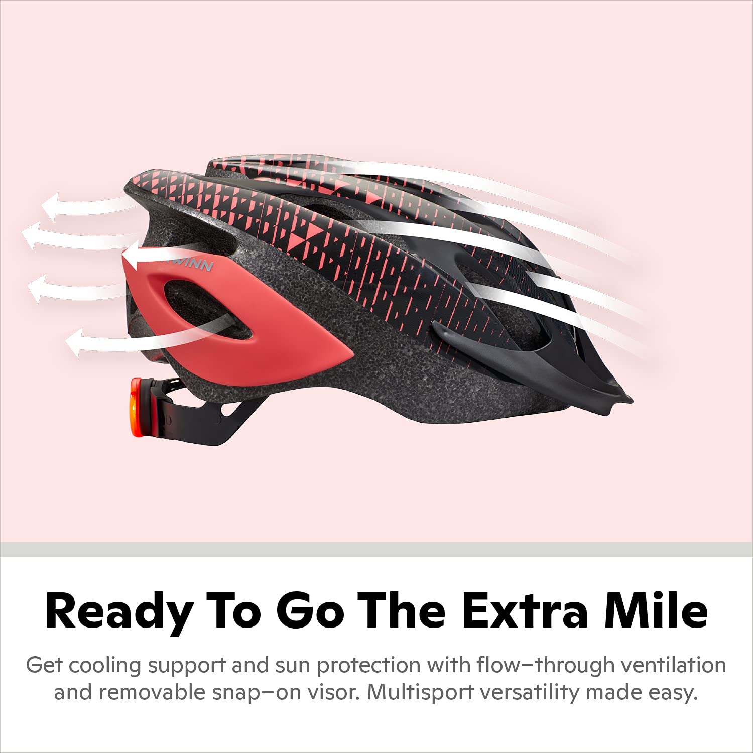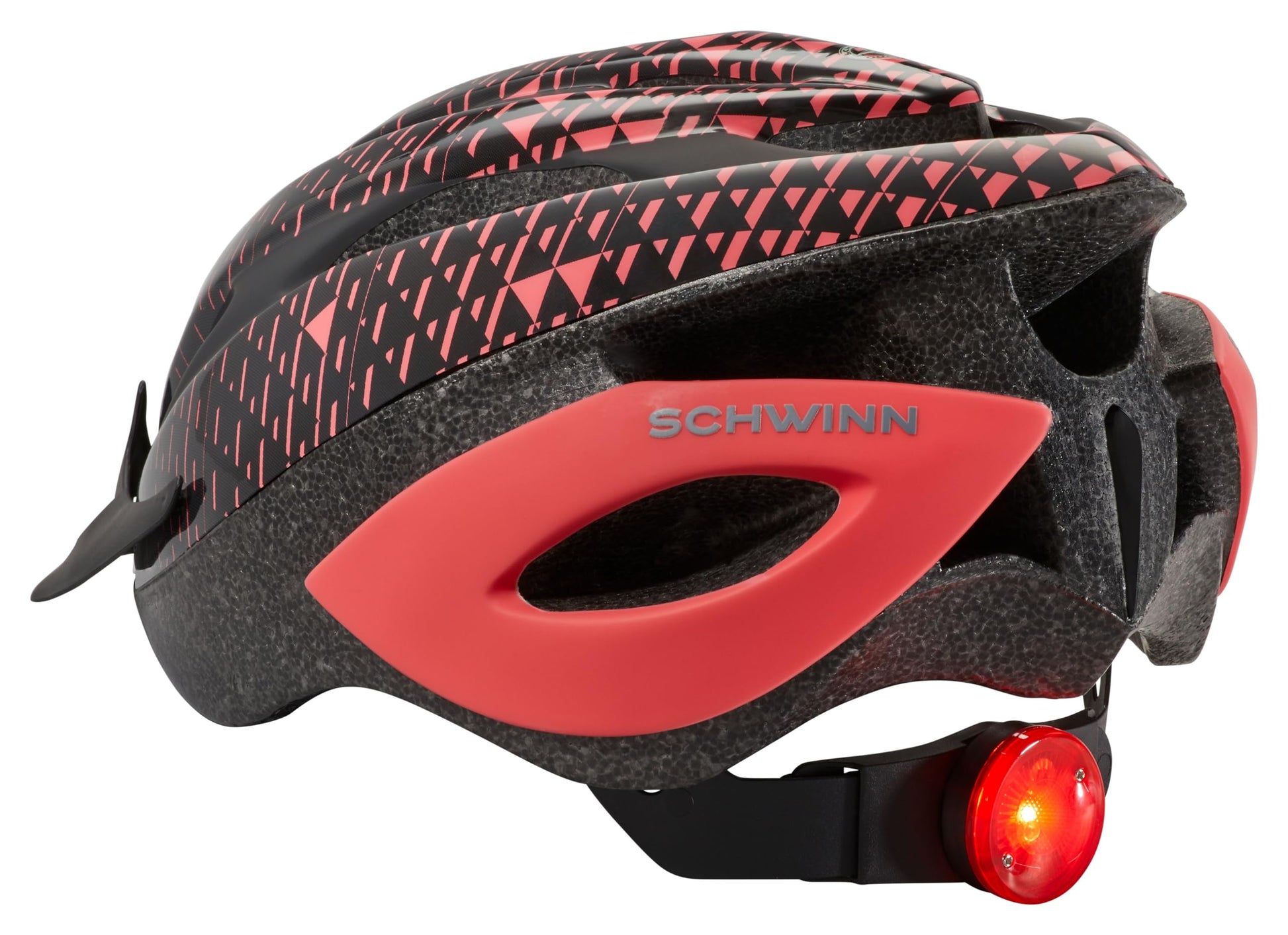 Schwinn Thrasher Adult Bike Helmet, Ages 14 and Up with Suggested Fit 58 to 62cm, Rear LED Light, Lightweight with Adjustable Side and Chin Straps, Pink Coral/Grey