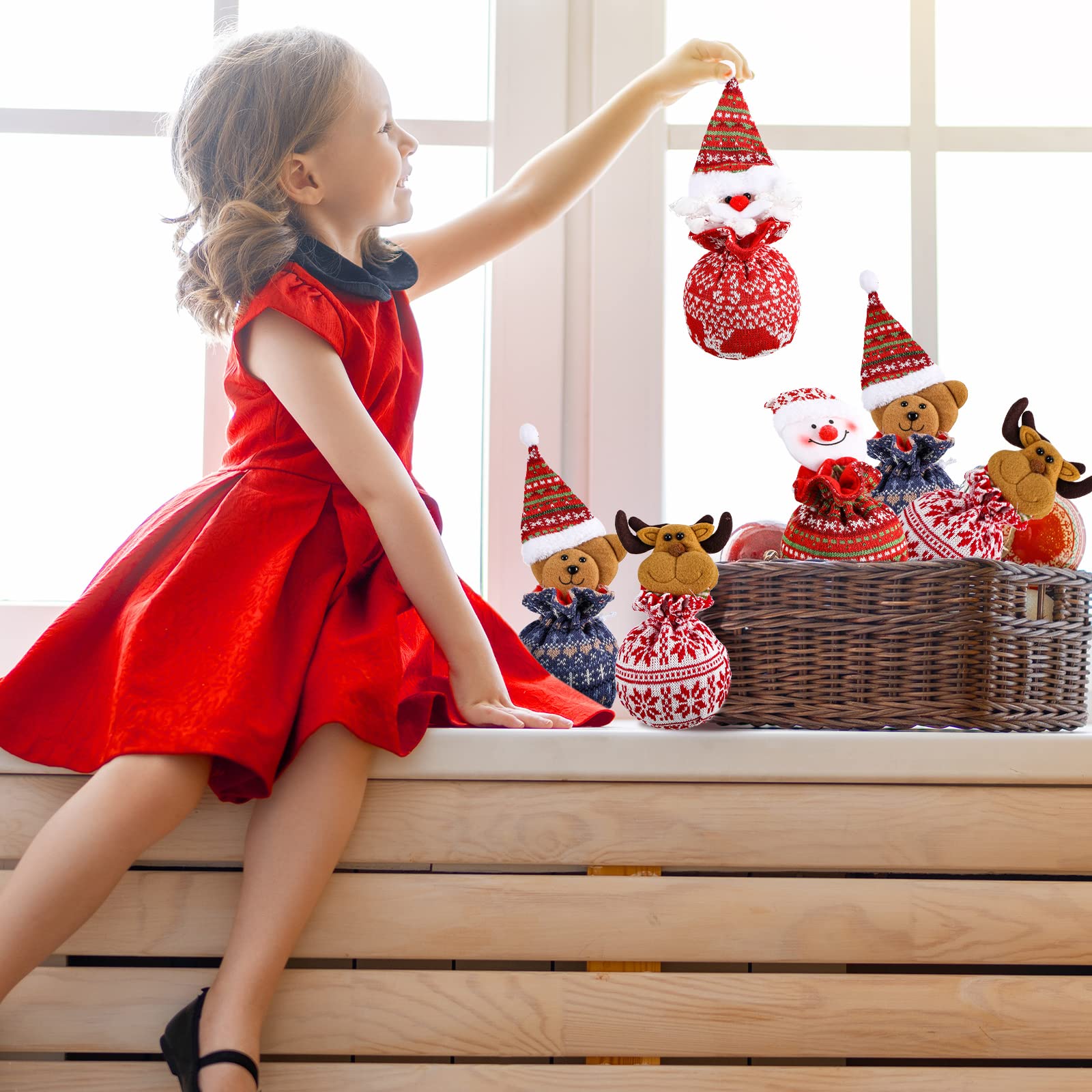 Shappy 12 Pcs Christmas Small Drawstring Bag Xmas 3D Doll Gift Bags Mini Christmas Apple Cookie Candy Holiday Treat Bag 11 x 6 Inch for Stockings Party Supplies Decor