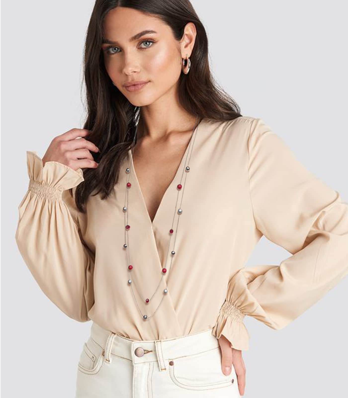 - Layered necklace size: The long beaded necklace can be detached and divided into two independent silver necklace, the lengths are 39inch and 43inch respectively, and extension chains are installed, which can be adjusted to suit your length at will. In terms of wearing options, you can layer them or wear them separately