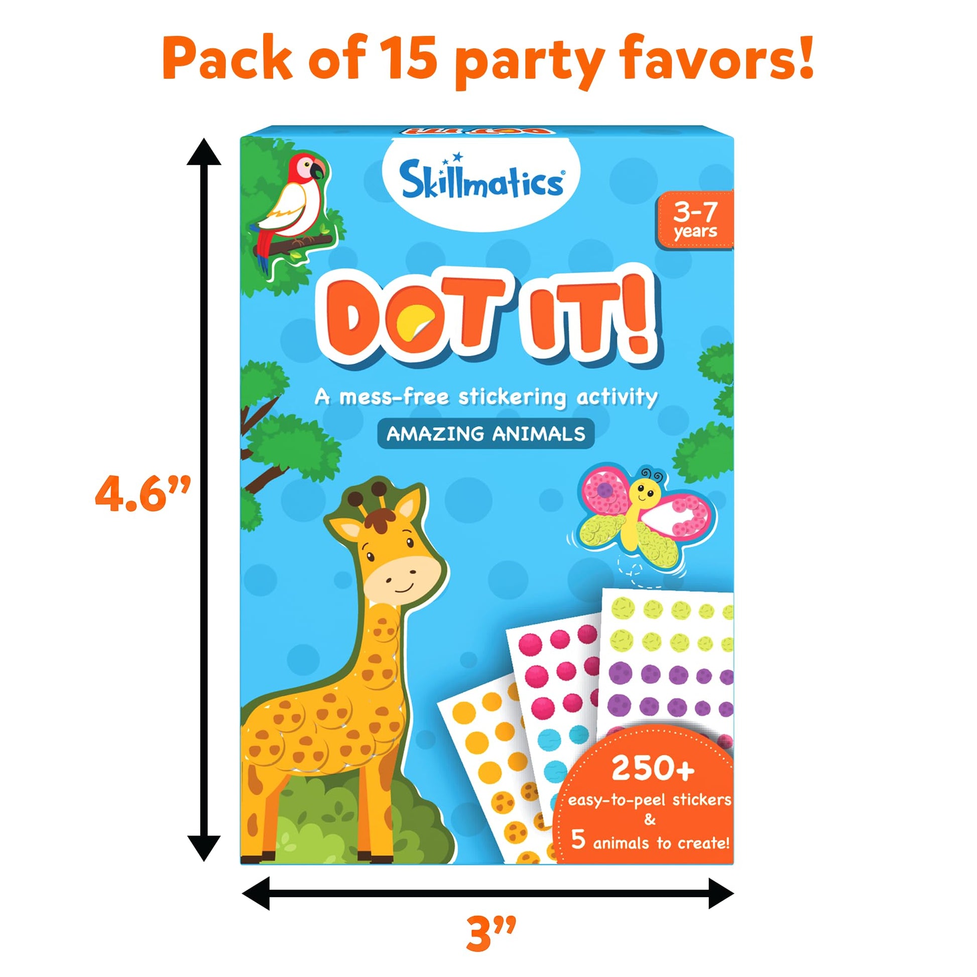 - 15 PARTY FAVORS: Enhance your party goodie bags with Skillmatics Dot It! animal-themed dot sticker art acitivity sets.These sets are the perfect little party favors for all animal lovers!