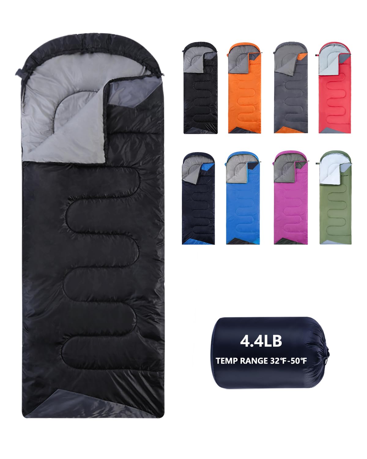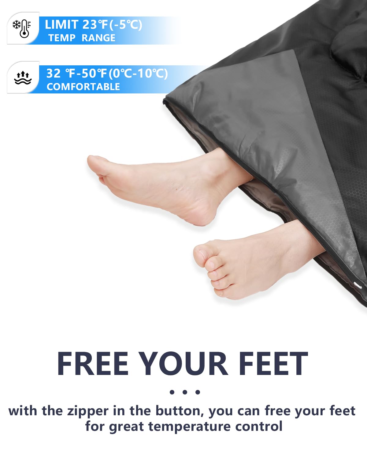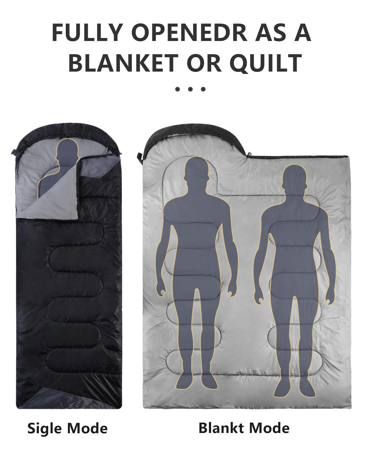 Sleeping Bags for Adults Cold Weather - 20 Degree Big&Tall Size Backpacking Lightweight Waterproof for Girls Boys Mens Teen Women for Camping Hiking Outdoor Travel Hunting with Compression Bags(Black)